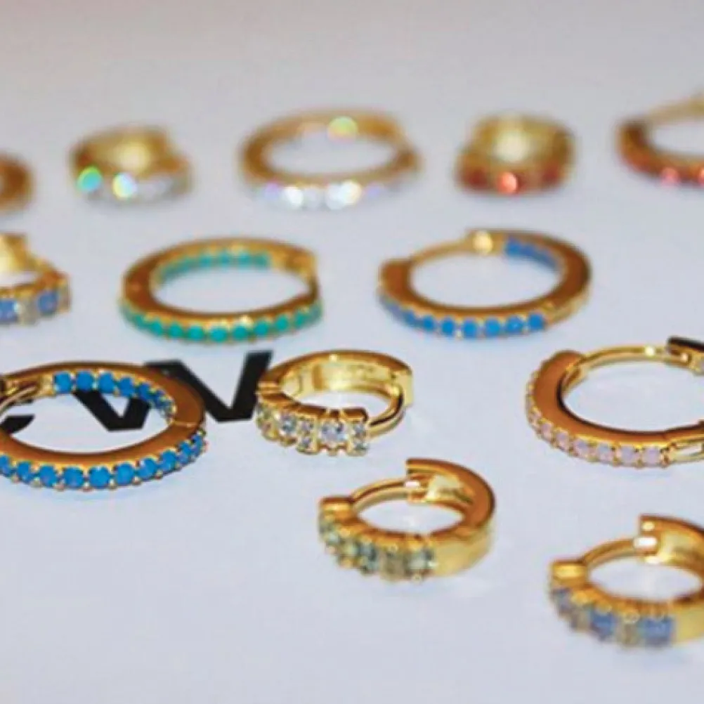 Smukke creoler fra Pico Copenhagen med smukke farverige sten. Øreringene er i forgyldt sterlingsølv med en blank overflade.