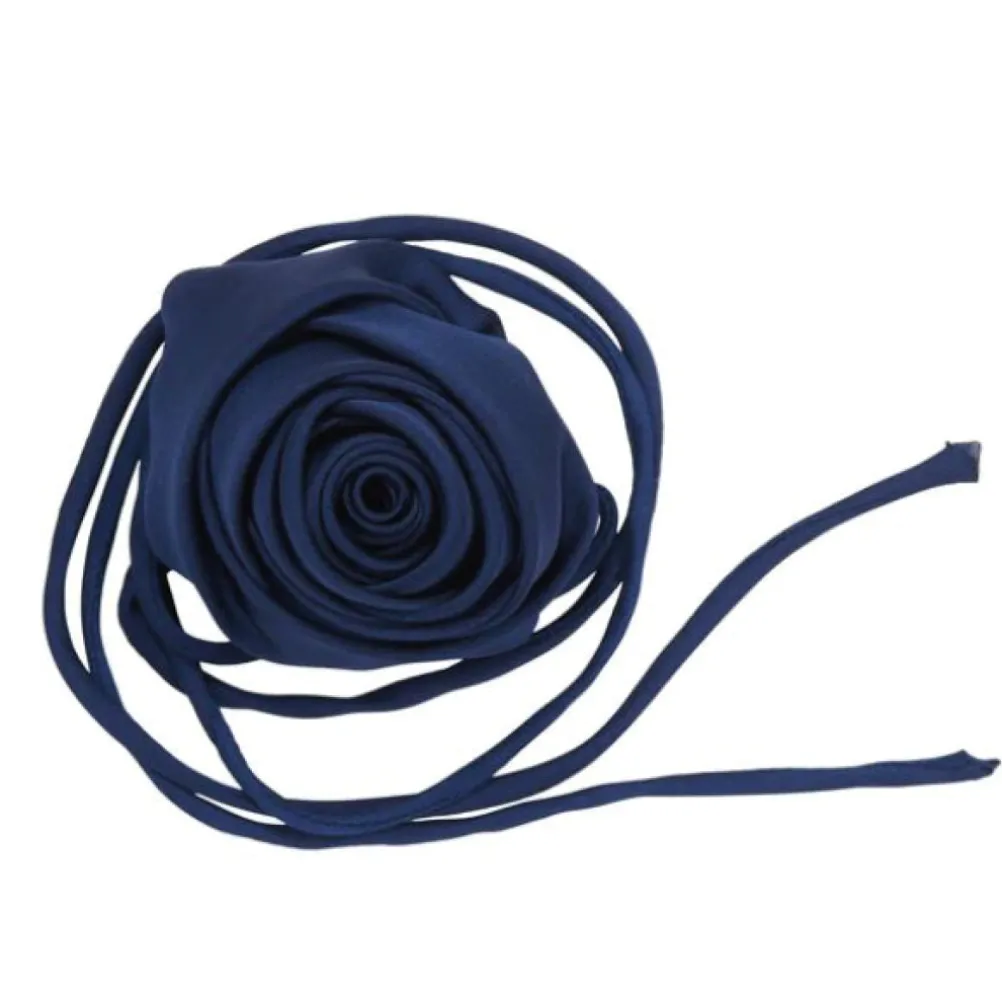 Smuk satinrose fra Pico Copenhagen. Blomsten kan både bruges som halskæde eller bælte. Mål: Rose: 6 cm. String: L: 115 cm