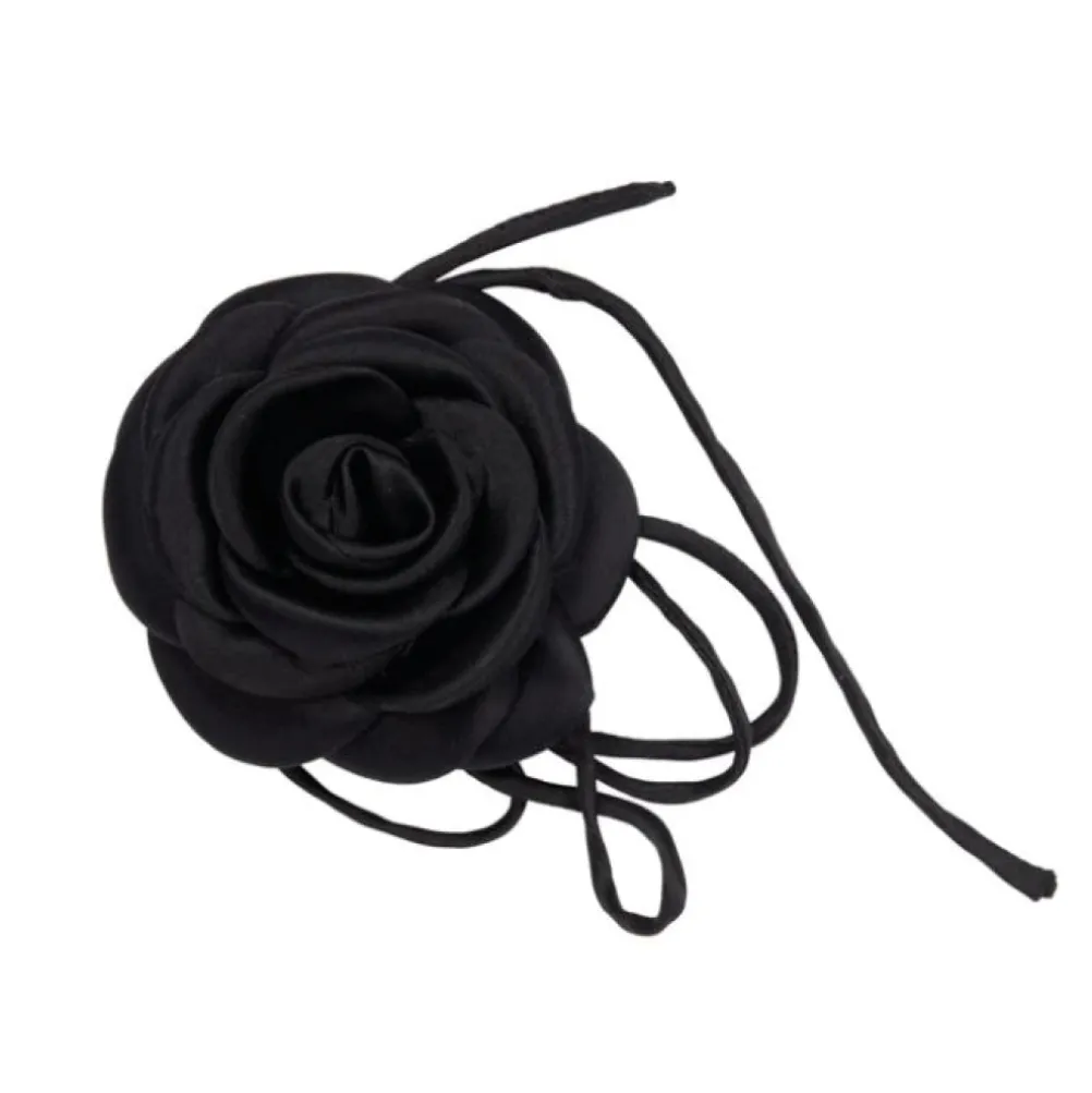 Smuk flower satin rose fra Pico Copenhagen. Blomsten kan både sættes i håret, bruges som broche, halskæde eller bælte.
