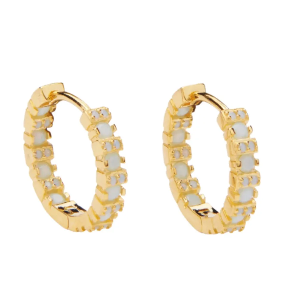 Smukke små hoops fra Pico Copenhagen med forskellige størrelser af nanokrystaller.