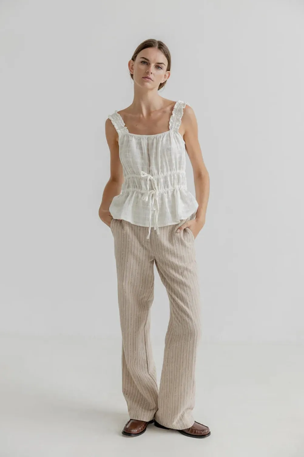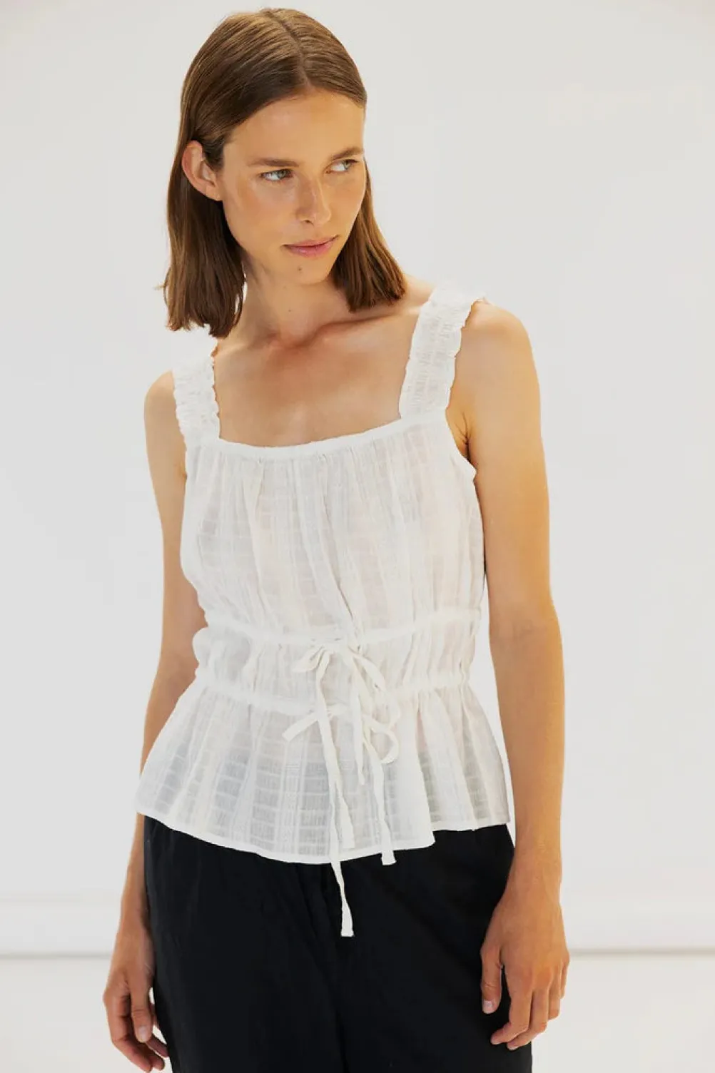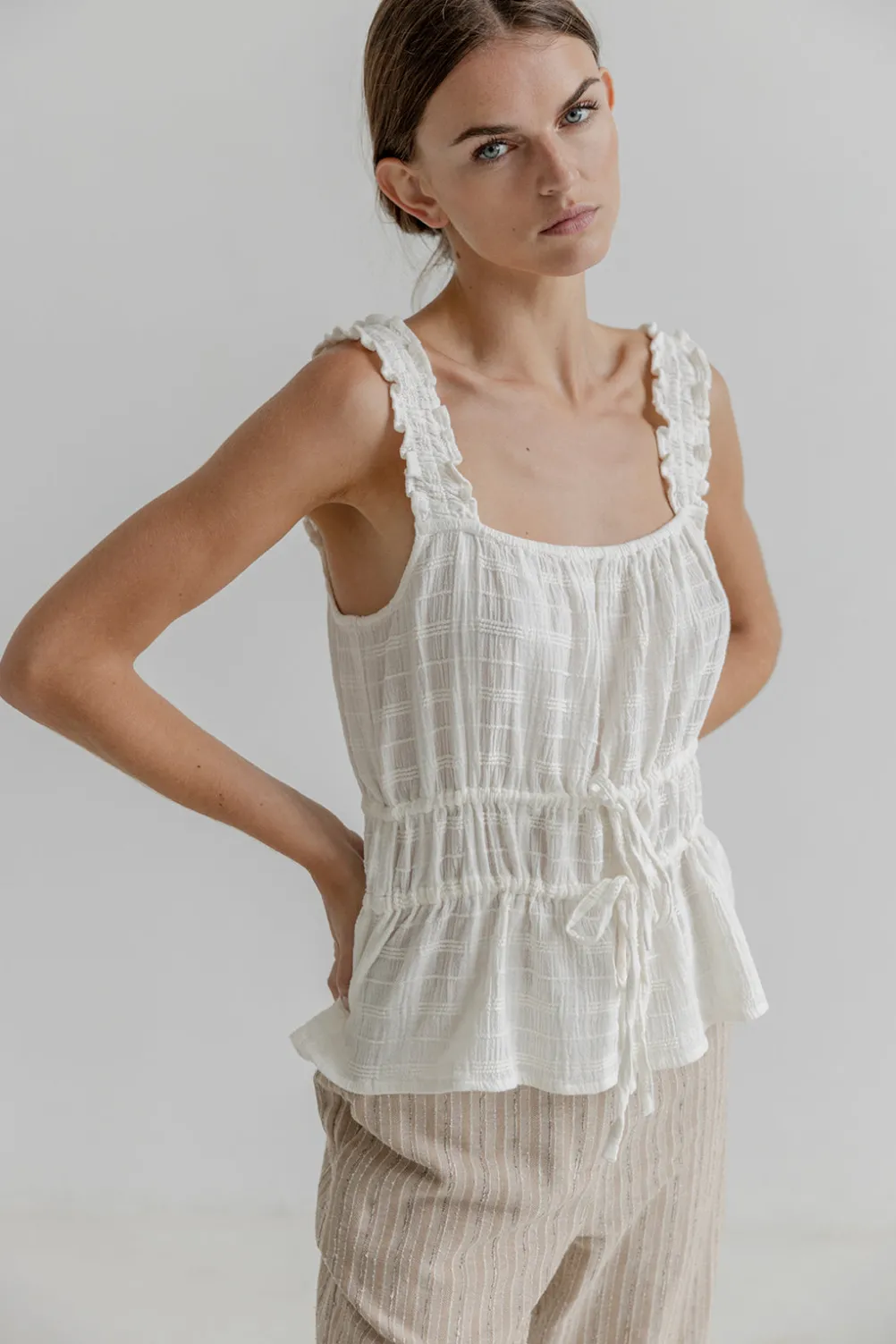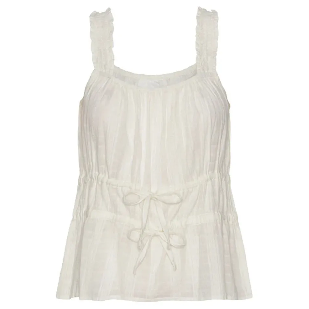 Super fin sommertop med fine detaljer fra Project Aj117. Med smock ved stropperne og fine bindebånd i taljen.
