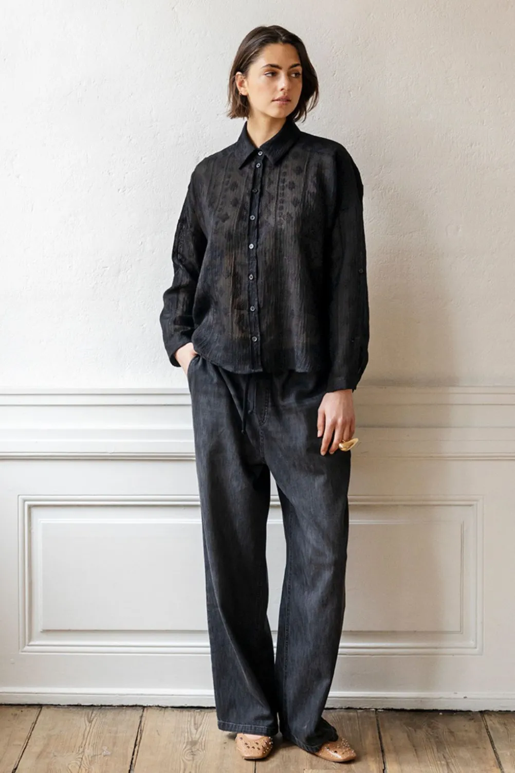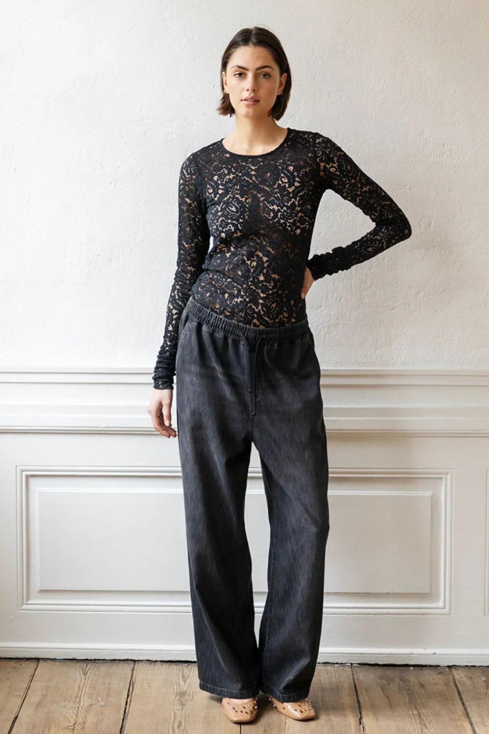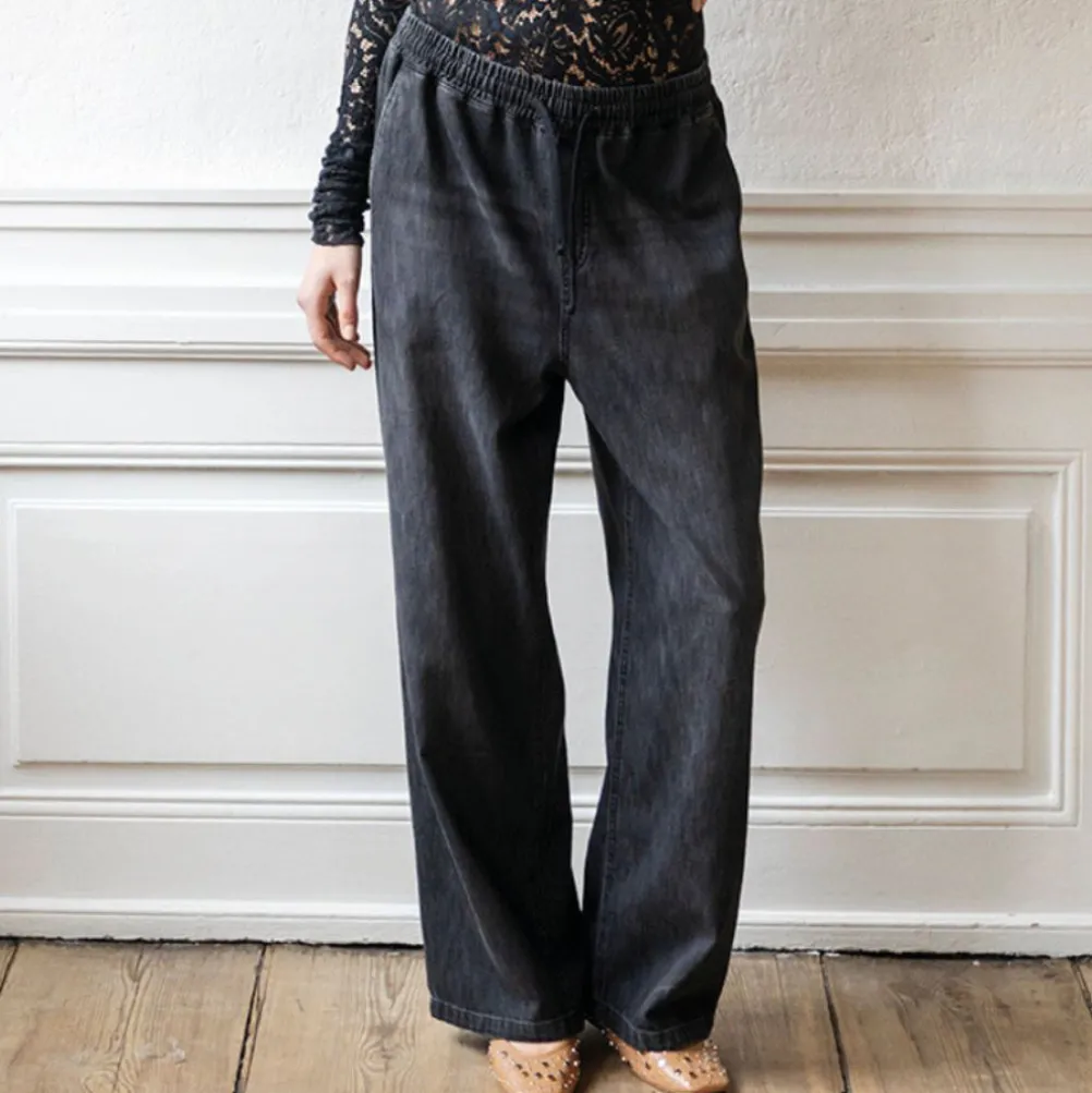 Flotte bukser fra Project Aj117 med brede ben og elastik i taljen med snøre. Lavet i en blød kvalitet, så de er meget komfortable at bære. Modellen er iklædt en str. M.