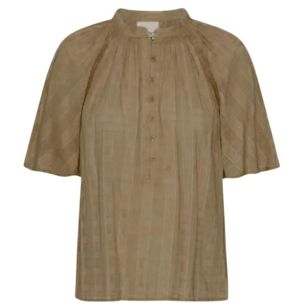 Feminin bluse fra Project Aj117 med fine detaljer. Med korte ærmer, knapper ved brystet og diskret mønster. Lavet i en dejlig blød kvalitet. Kan styles til det meste.