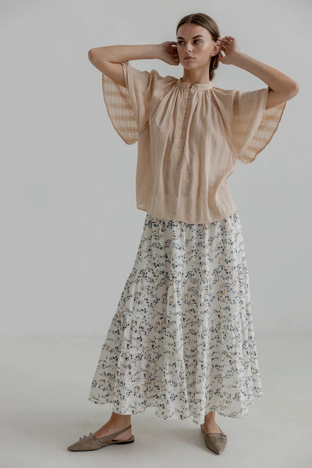 Feminin bluse fra Project Aj117 med fine detaljer. Med korte ærmer, knapper ved brystet og diskret mønster. Lavet i en dejlig blød kvalitet. Kan styles til det meste.