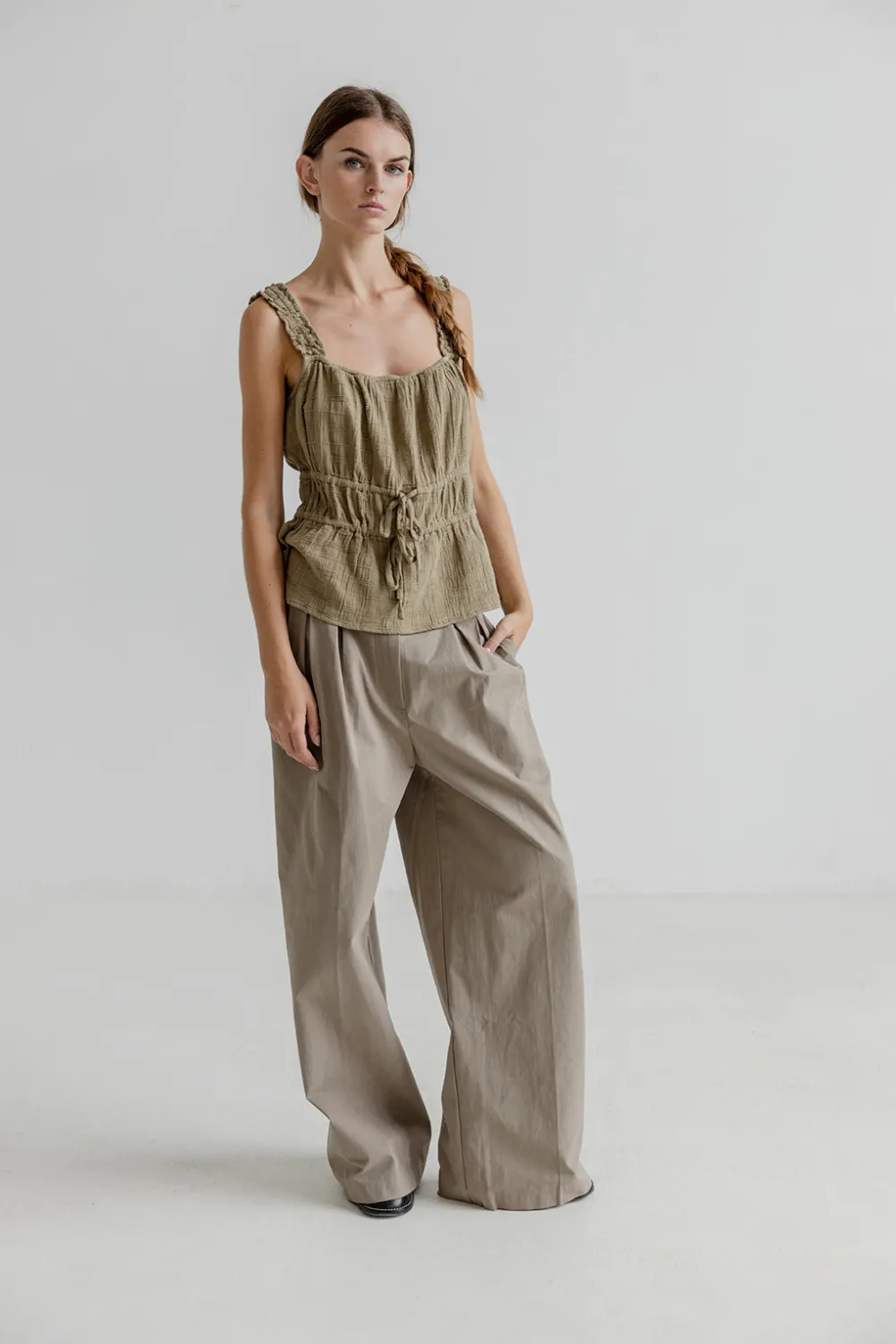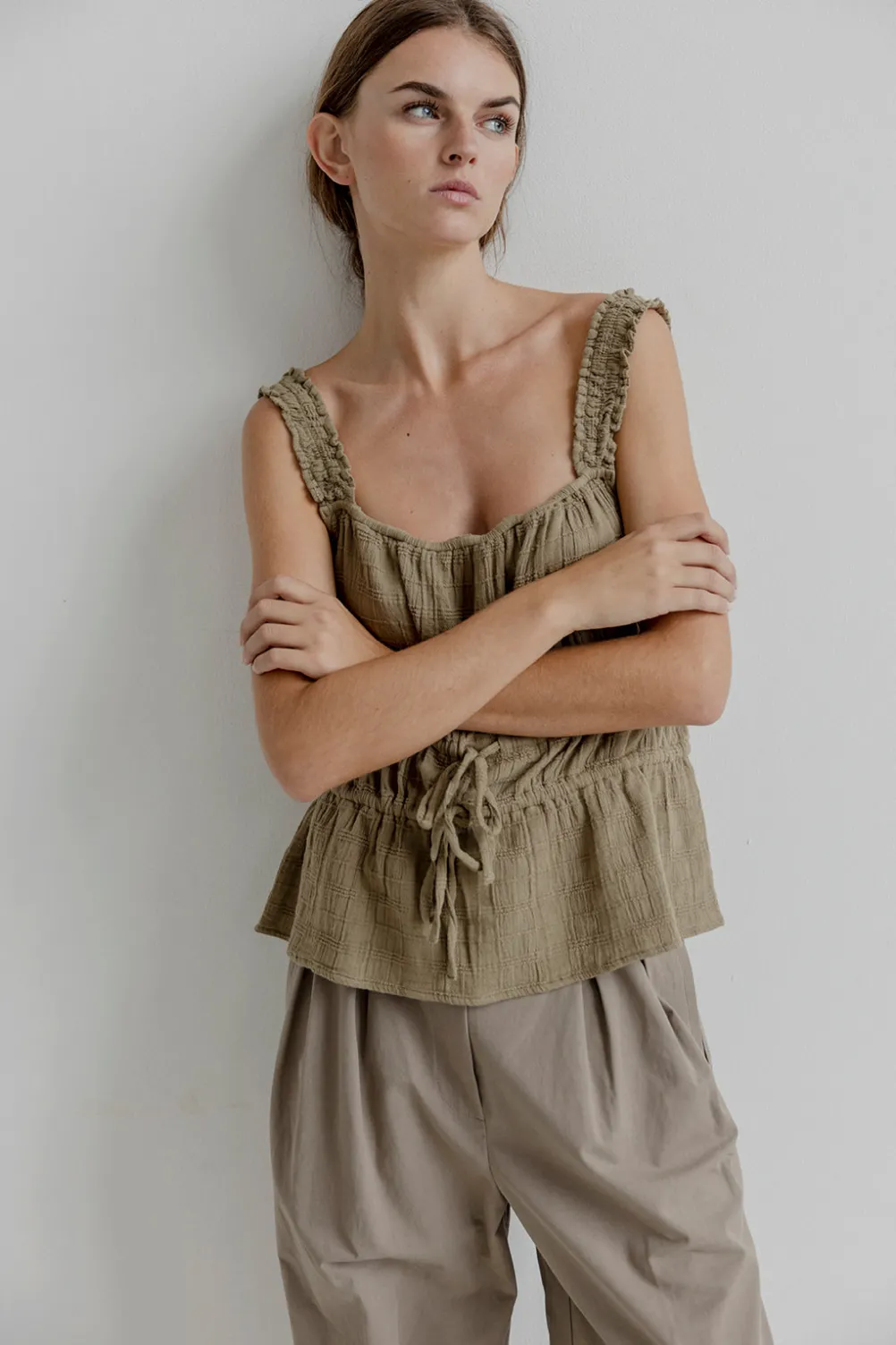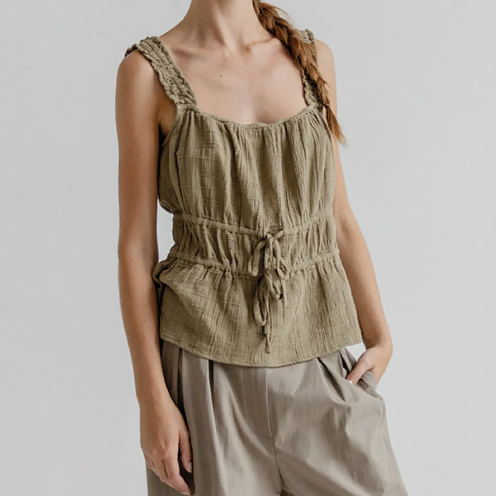 Super fin sommertop med fine detaljer fra Project Aj117. Med smock ved stropperne og fine bindebånd i taljen.