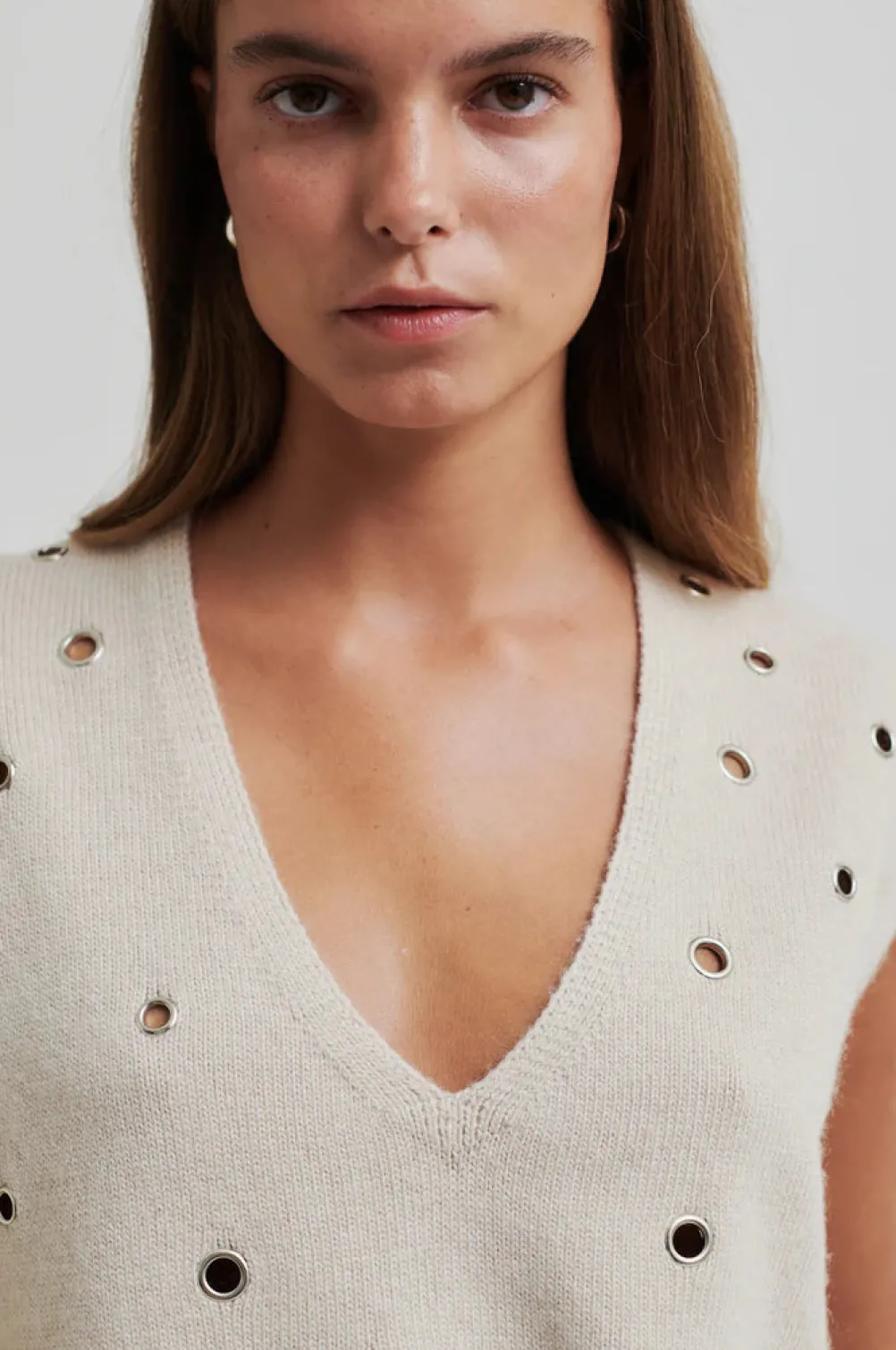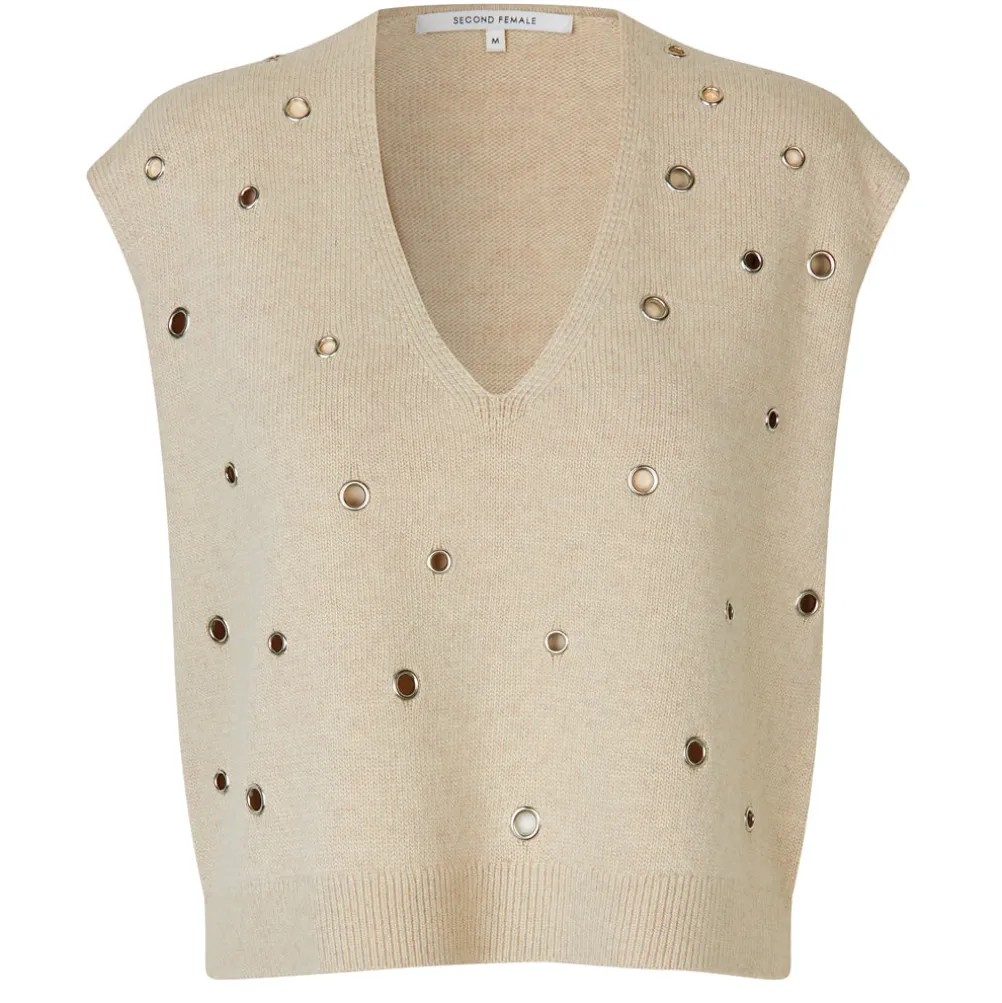 Cool strikket vest med fine detalher fra Second Female. Med dyb v-udskæring og små snøreringe. Style den over en skjorte eller brug den, som den er.