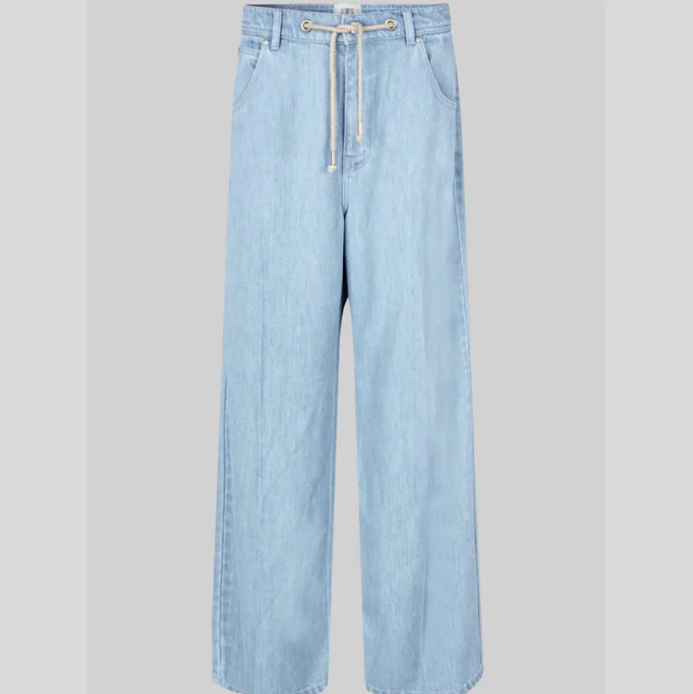 Cool lyseblå jeans fra Second Female fremstillet i blød denim af lyocell med kontrastsømme. Med stofbindebælte i taljen og mellemhøj talje og løs pasform med ekstra brede ben.