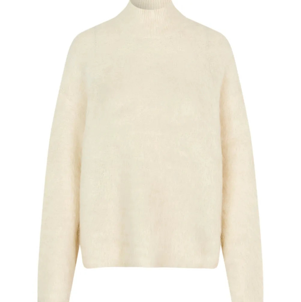Lækker strik med rullekrave fra Second Female. Lavet i en blød kvalitet. Løs pasform.
