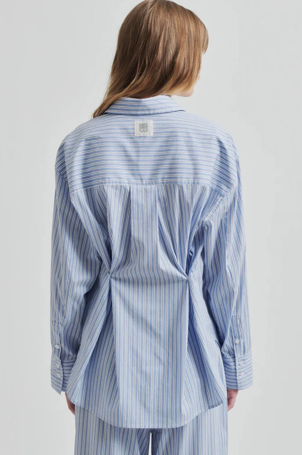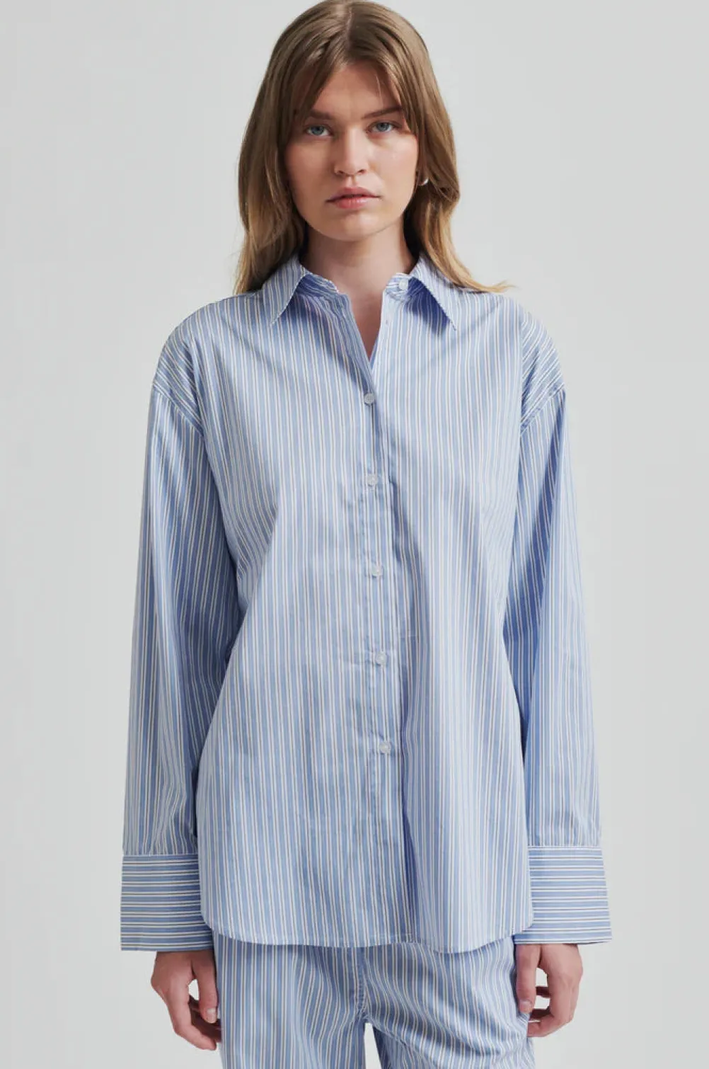 Flot klassisk skjorte fra Second Female med justerbar pasform på ryggen. Med tynde striber, klassisk krave og knaplukning langs fronten.