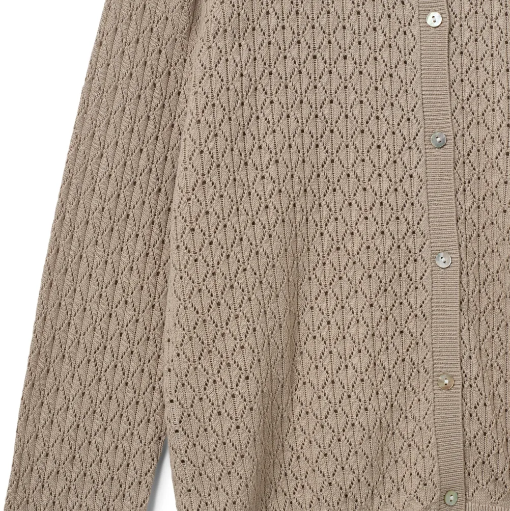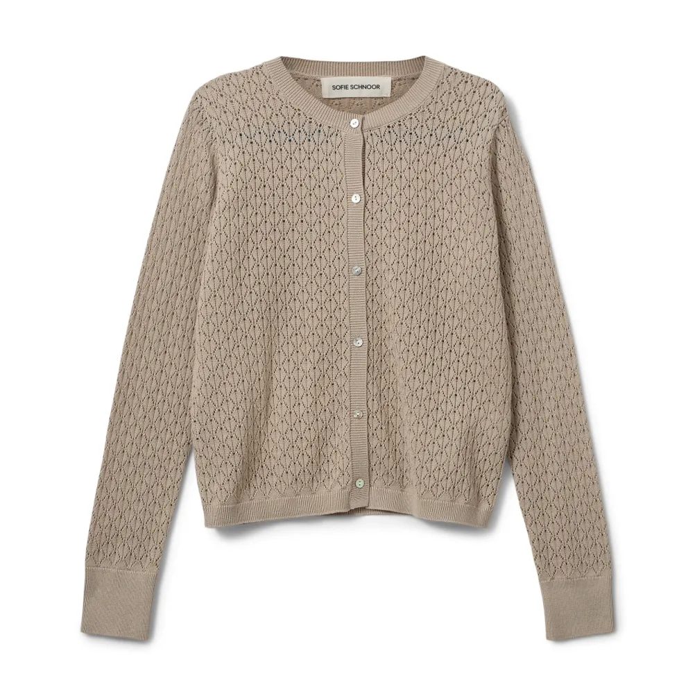 Skøn enkel cardigan fra Sofie Schnoor med knaplukninger foran og smukt strikket mønster. Fremstillet af bomuld og viskose.