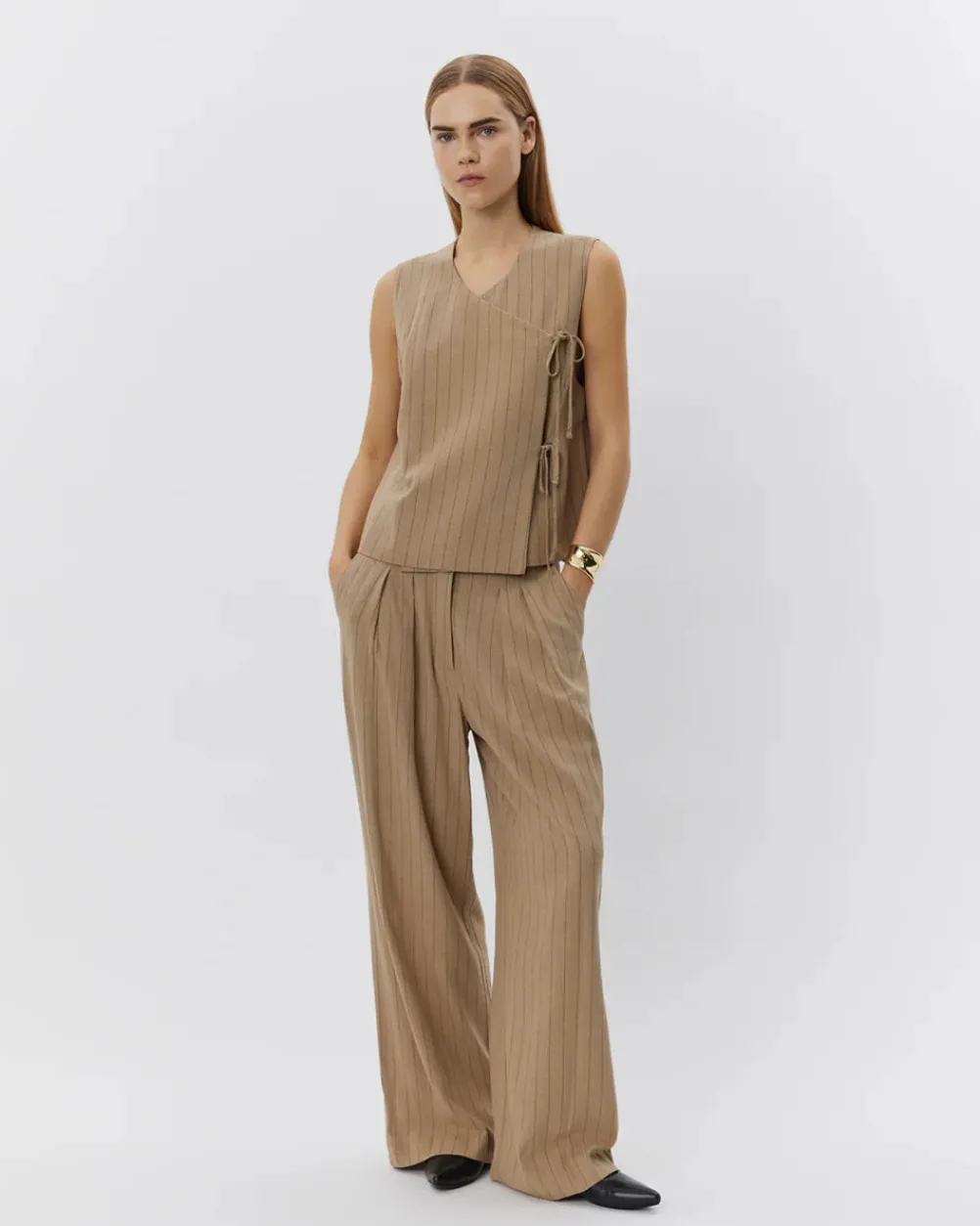 Flot klassisk nålestribet vest fra Sofie Schnoor med asymetrisk lukning med fine bindebånd.