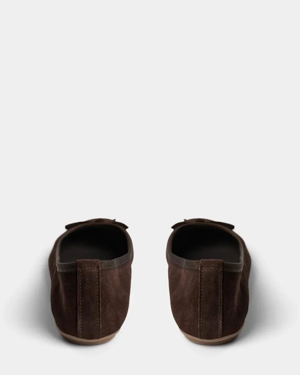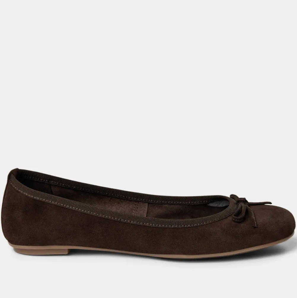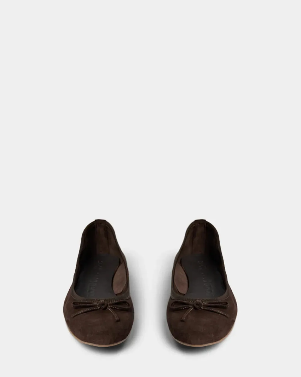 Smukke og eksklusive mørkebrune ballerinaer i ruskind fra Sofie Schnoor med fine detaljer! Et must til forårets og sommerens styles.