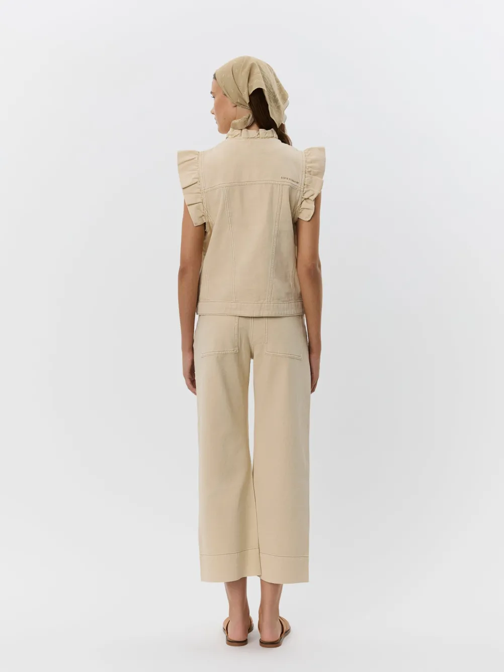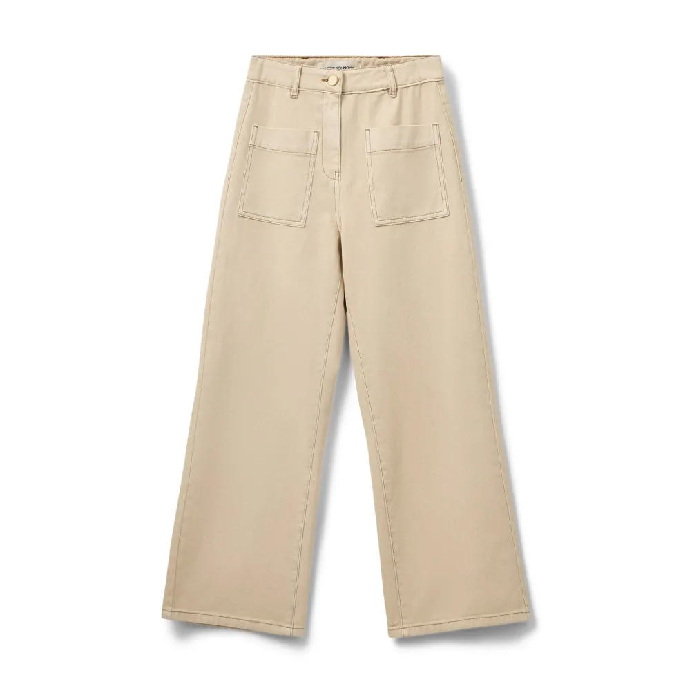 Flotte sandfarvede bukser fra Sofie Schnoor med mellemhøj talje og afslappet pasform. Med stretch, som sikrer en kom komfort.