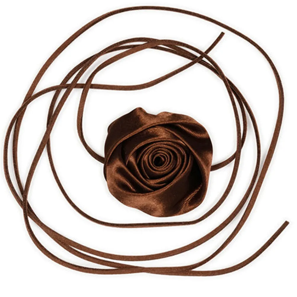 Smuk satinrose med snor, som kan bruges både som halssmykke, i livet som bælte eller i håret.