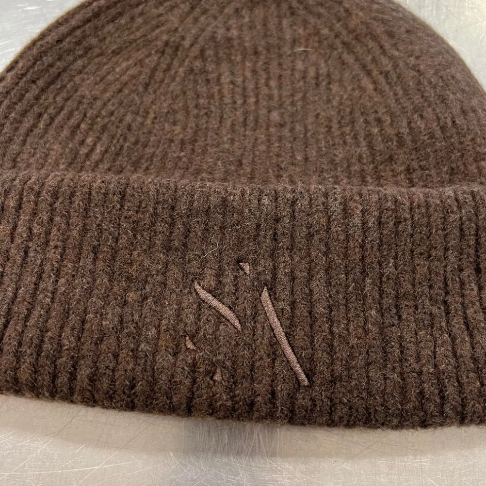 Skøn hue/beanie i ribstrik med ombukket kant med logo fra Sui Ava. Huen har et simpelt og tidsløst look, der gør det muligt at bruge den sæson efter sæson. Fås i flere farver.