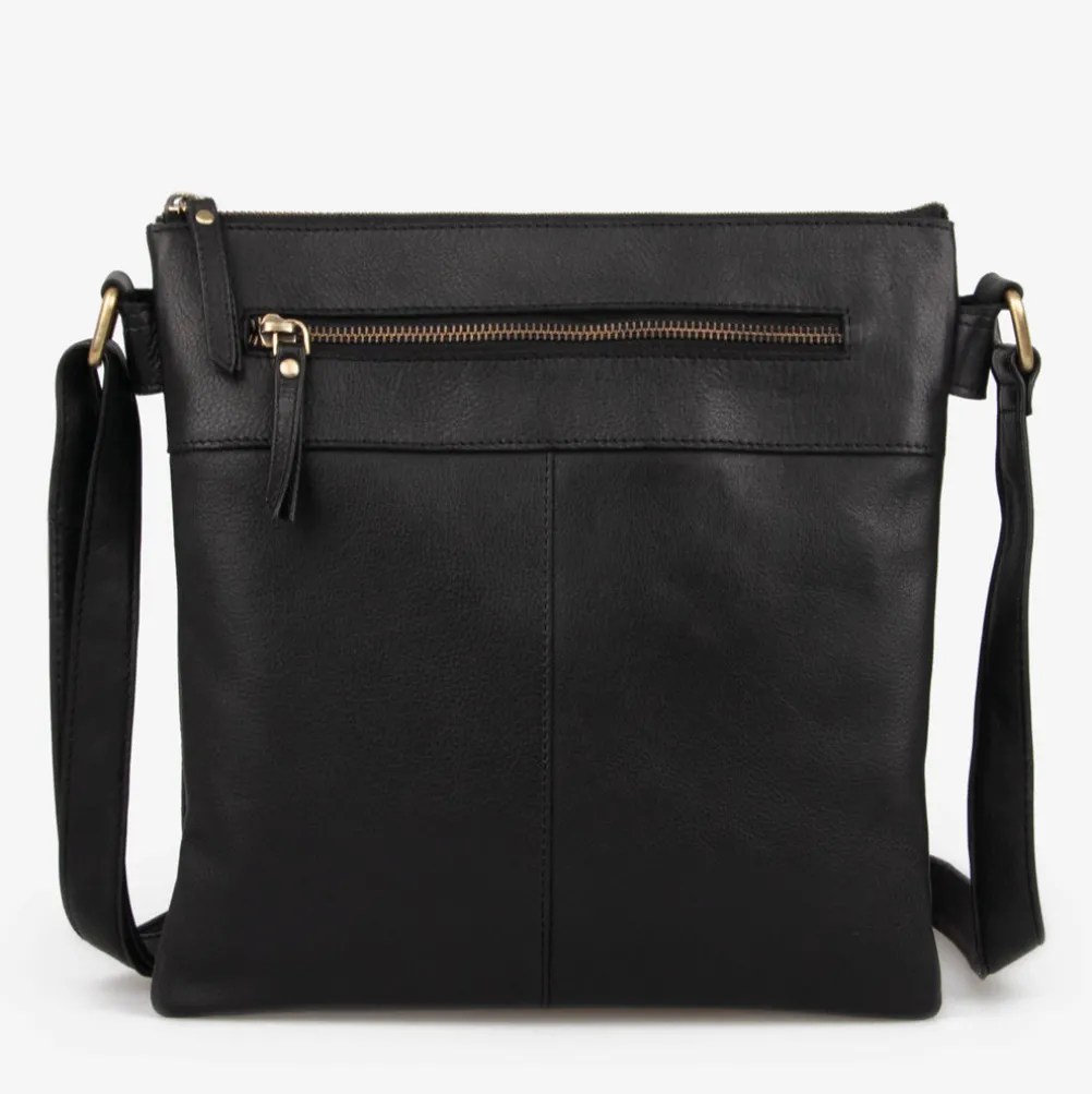 Lækker skuldertaske i læder fra Treats. Med en frontlomme med YKK lynlås, tre seperate åbne rum, en indvendig lomme med YKK lynlås og fire indvendige lommer til kort.