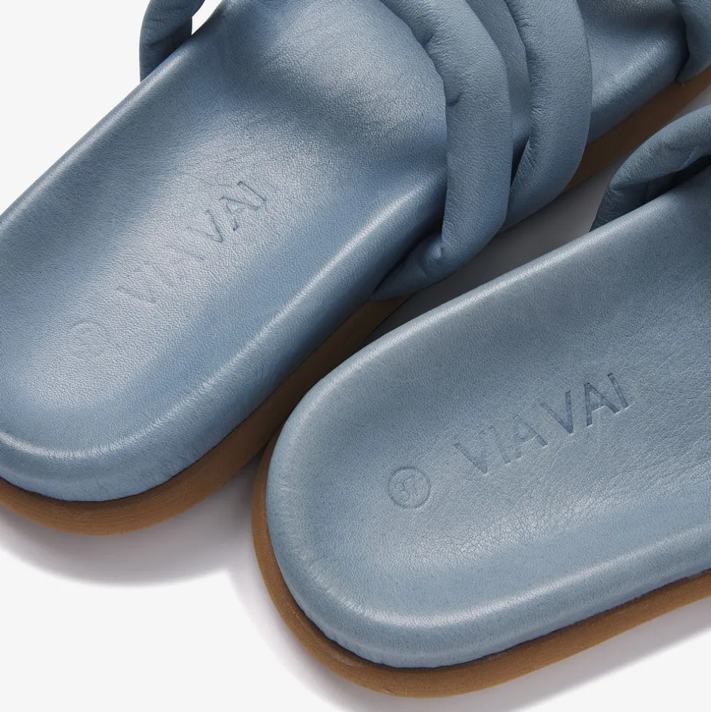Flotte blå læder slippers/sandaler fra Via Vai, som er meget behagelige og bløde at have på. Kan styles til det meste. Perfekte til foråret/sommeren.