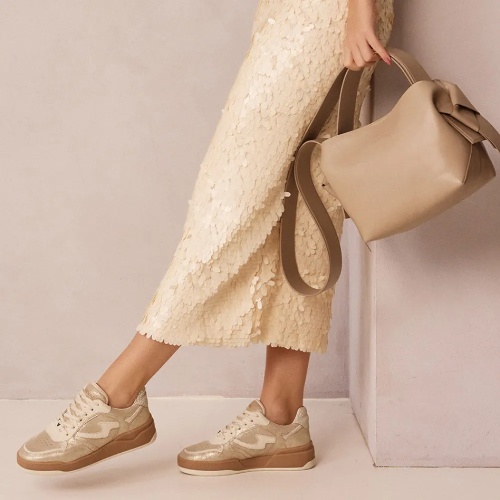 Elegante og trendy sneakers fra Via Vai med guldglimmer og fine sporty detaljer! Med tykke såler, der giver et sporty look, samt foring i læder. Lavet i ruskind med glimmer.