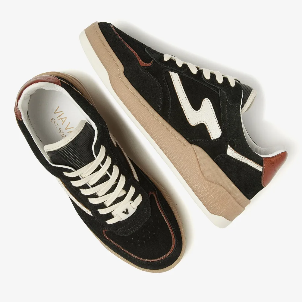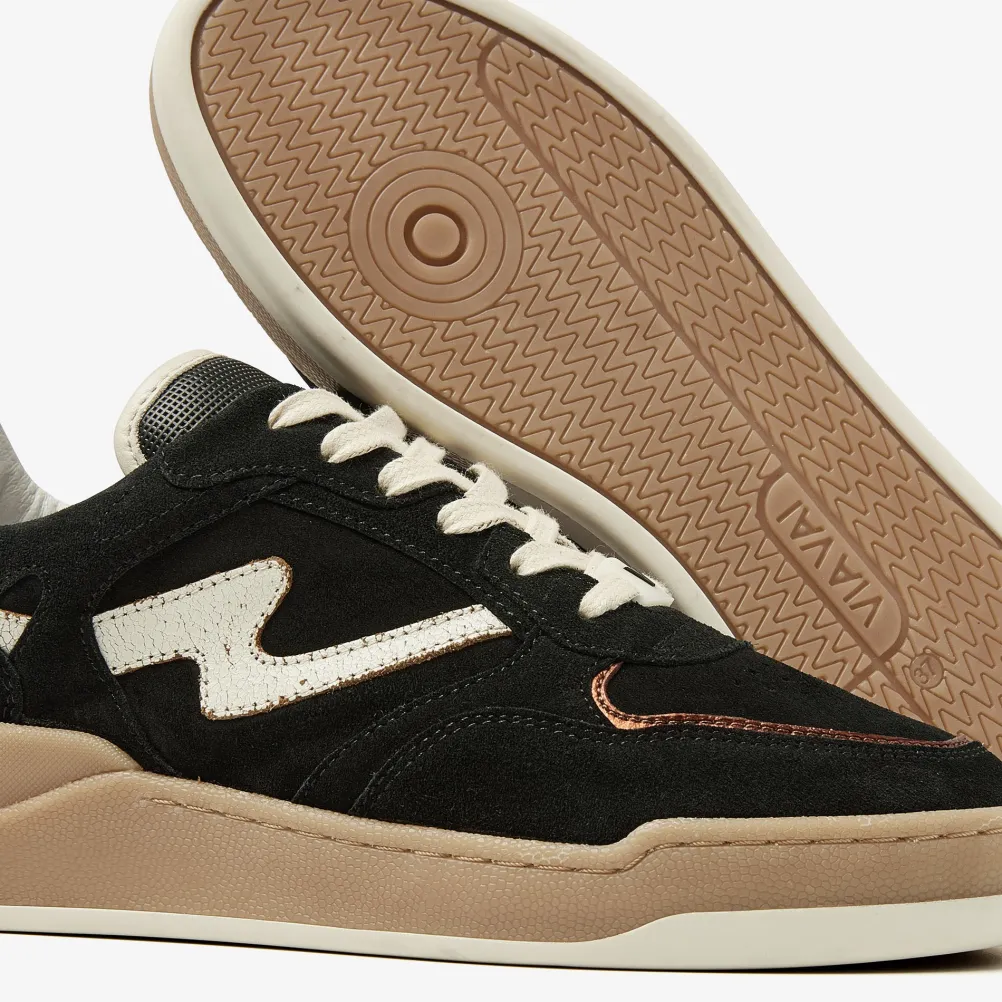 Lækre retroinspirerede sorte sneakers fra Via Vai med cool detaljer! Med snørebånd, metalliske detaljer og sporty perforinger. Lavet af læder og ruskind i høj kvalitet.