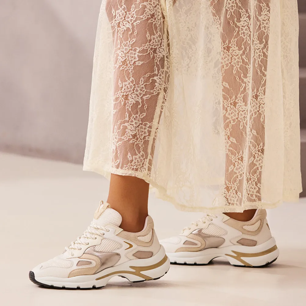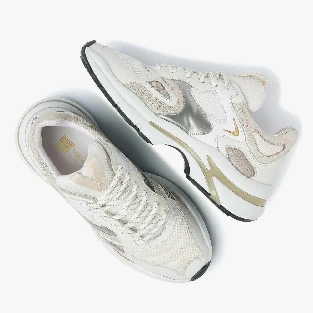 Cool og trendy sneakers fra Via Vai med fine detaljer! Med tykke såler, der giver et sporty look, samt fine metalliske detaljer. Lavet af læder og mesh i høj kvalitet.