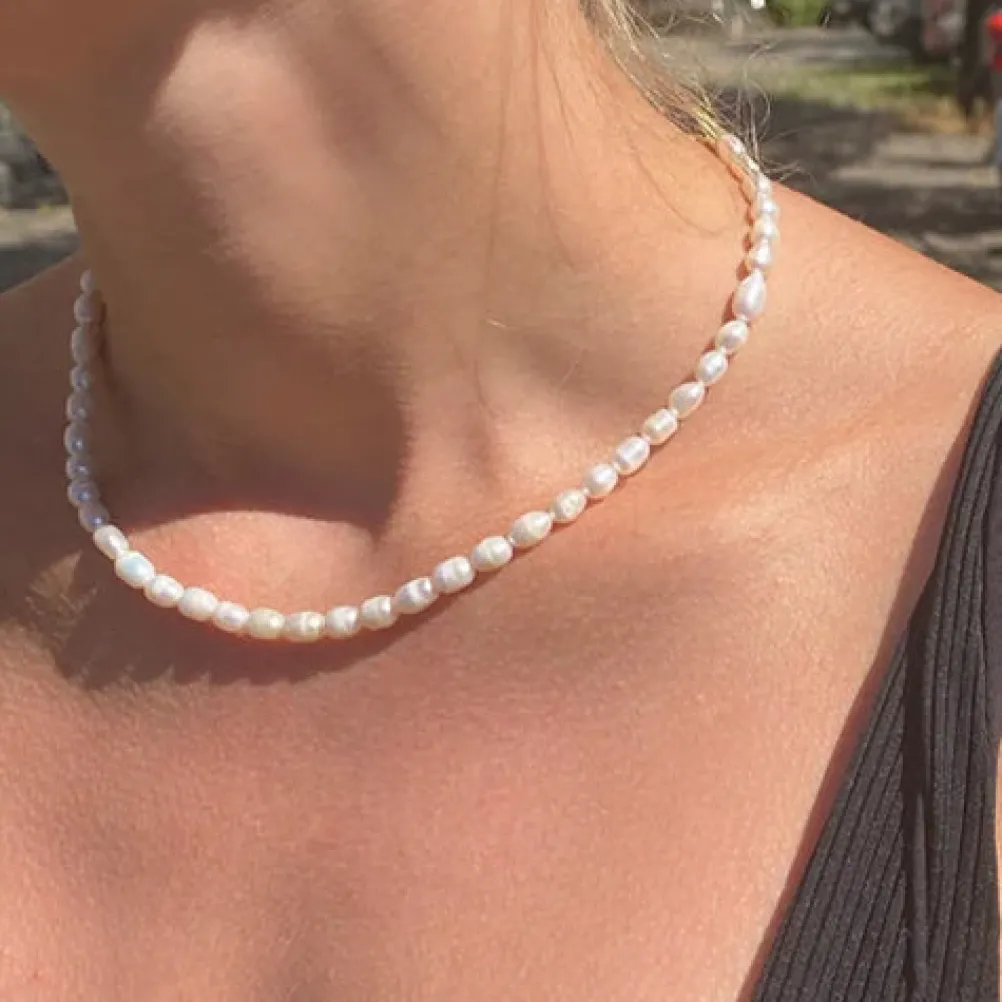 Materiale: 18 karat forgyldt messing og ægte ferskvandsperler. /Længde: 37-42,5 cm