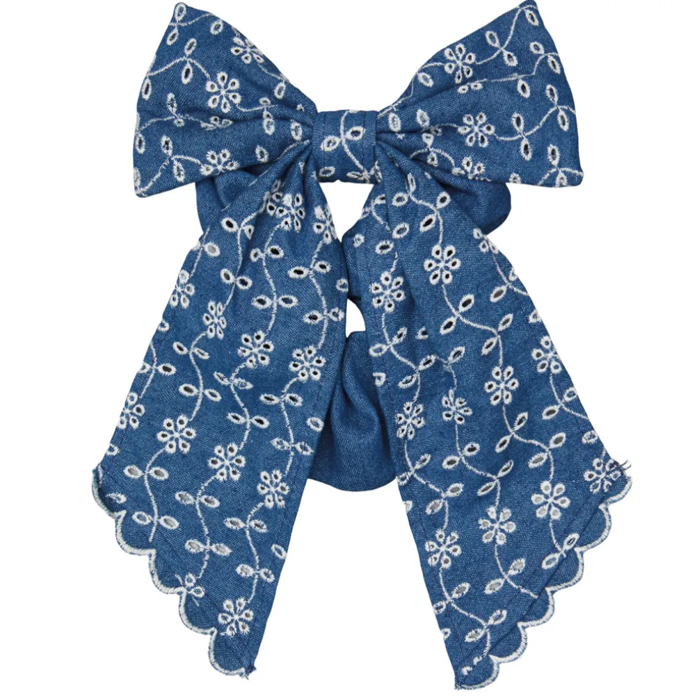 Flot denim scrunchie med en fin sløjfe med broderinger fra Beck Söndergaard.