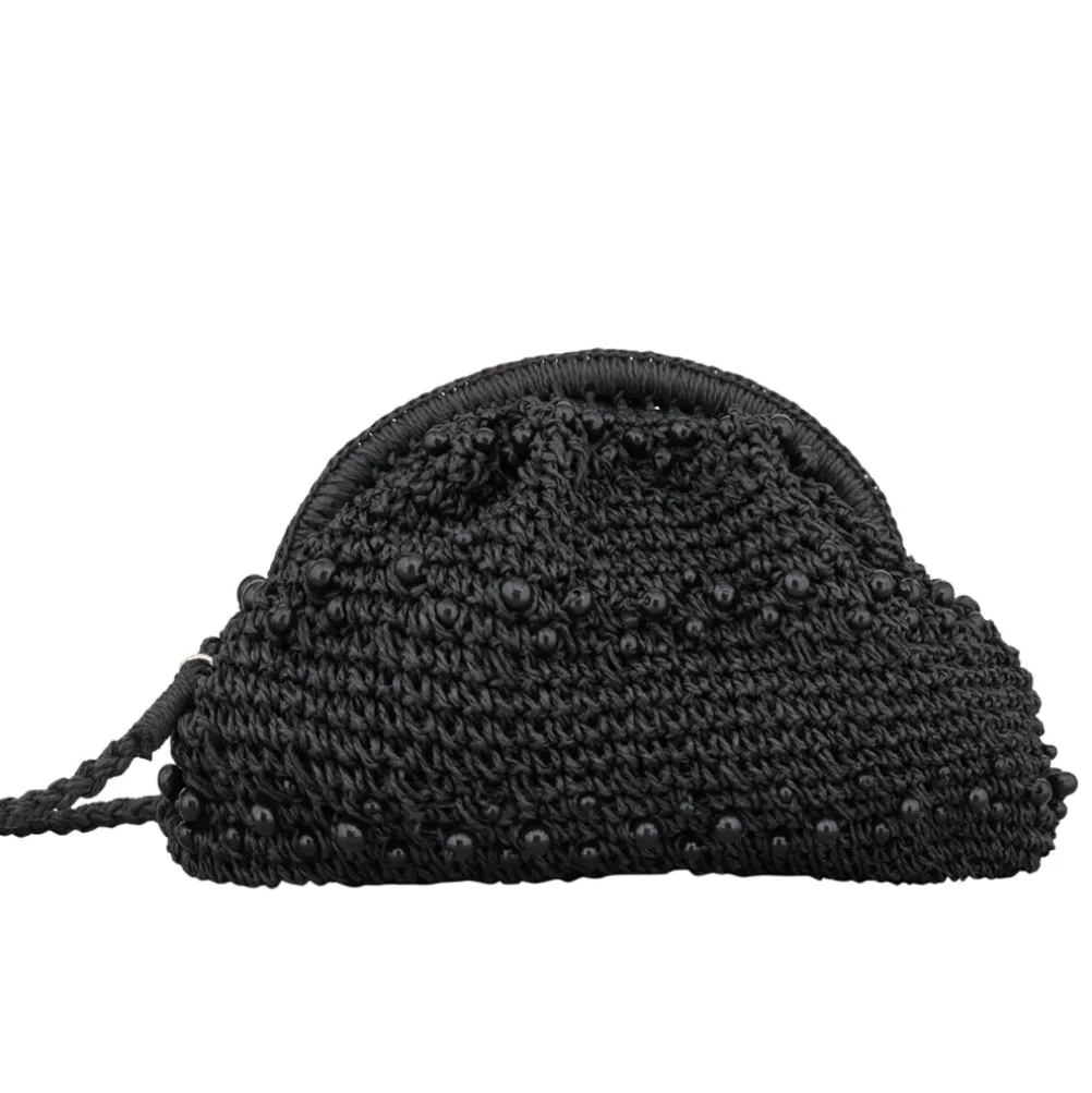 Smuk taske/clutch fra Beck Söndergaard lavet i 100 % paperstraw med små perler. Den har et stort rum og en mindre indvendig lomme. Med aftagelig rem.