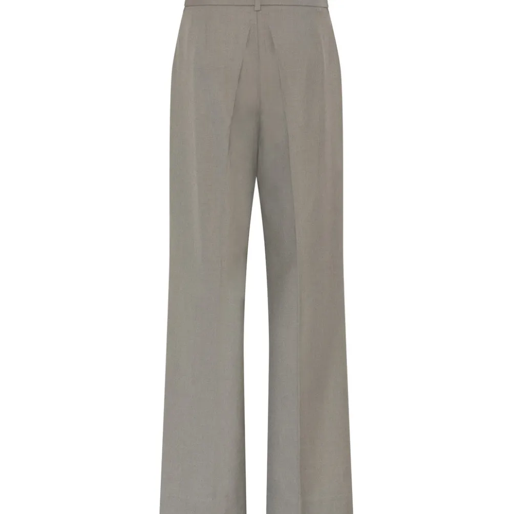 Elegante og cool bukser fra Bruuns Bazaar med dekorative mørke knapper, normal/høj talje og brede ben.