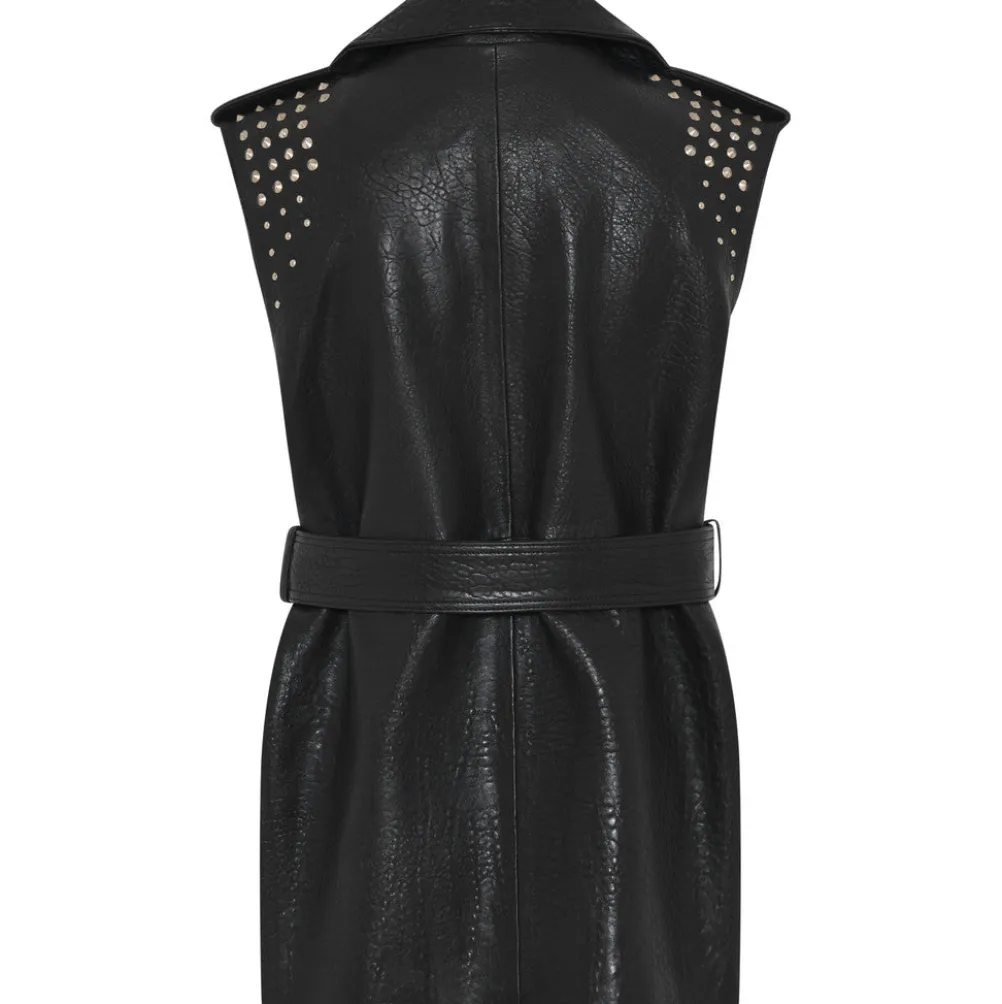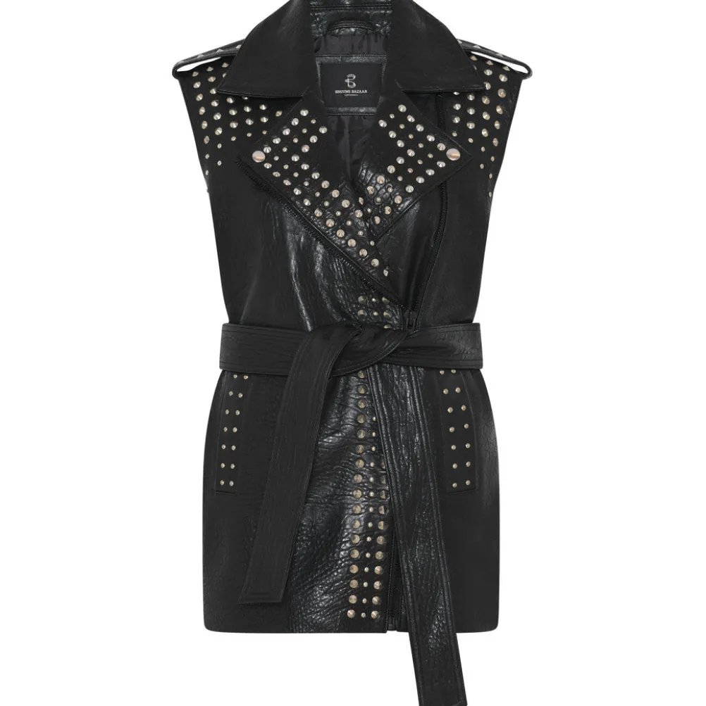 Super lækker og eksklusiv lædervest fra Bruuns Bazaar med cool detaljer! Med små nitter, brede revers og bindebånd i taljen.
