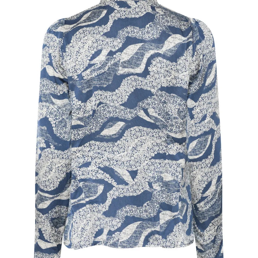 Elegant skjorte fra Bruuns Bazaar med lange ærmer, kinakrave, matchende knapper og et super flot print. Perfekt både til hverdag og fest.