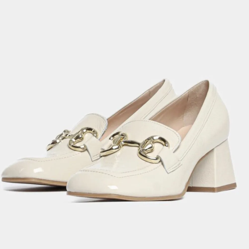 Super smukke beige pumps/loafers fra Bukela med smukke detaljer. Med høj hæl og behagelig pasform. Et must til forårets og sommerens styles.