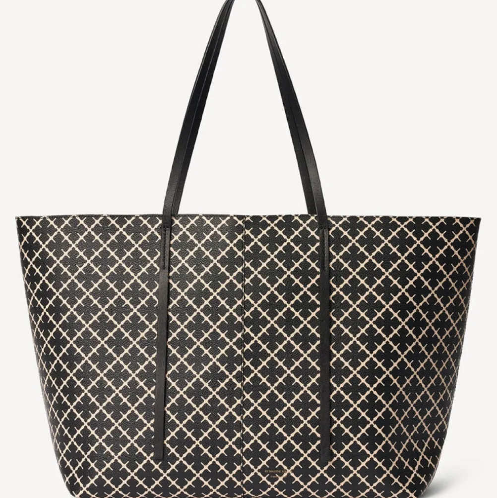 Pæn og klassisk taske med læderdetaljer fra Malene Birger med det velkendte signaturmønster. Tasken har inderlomme med lynlås.
