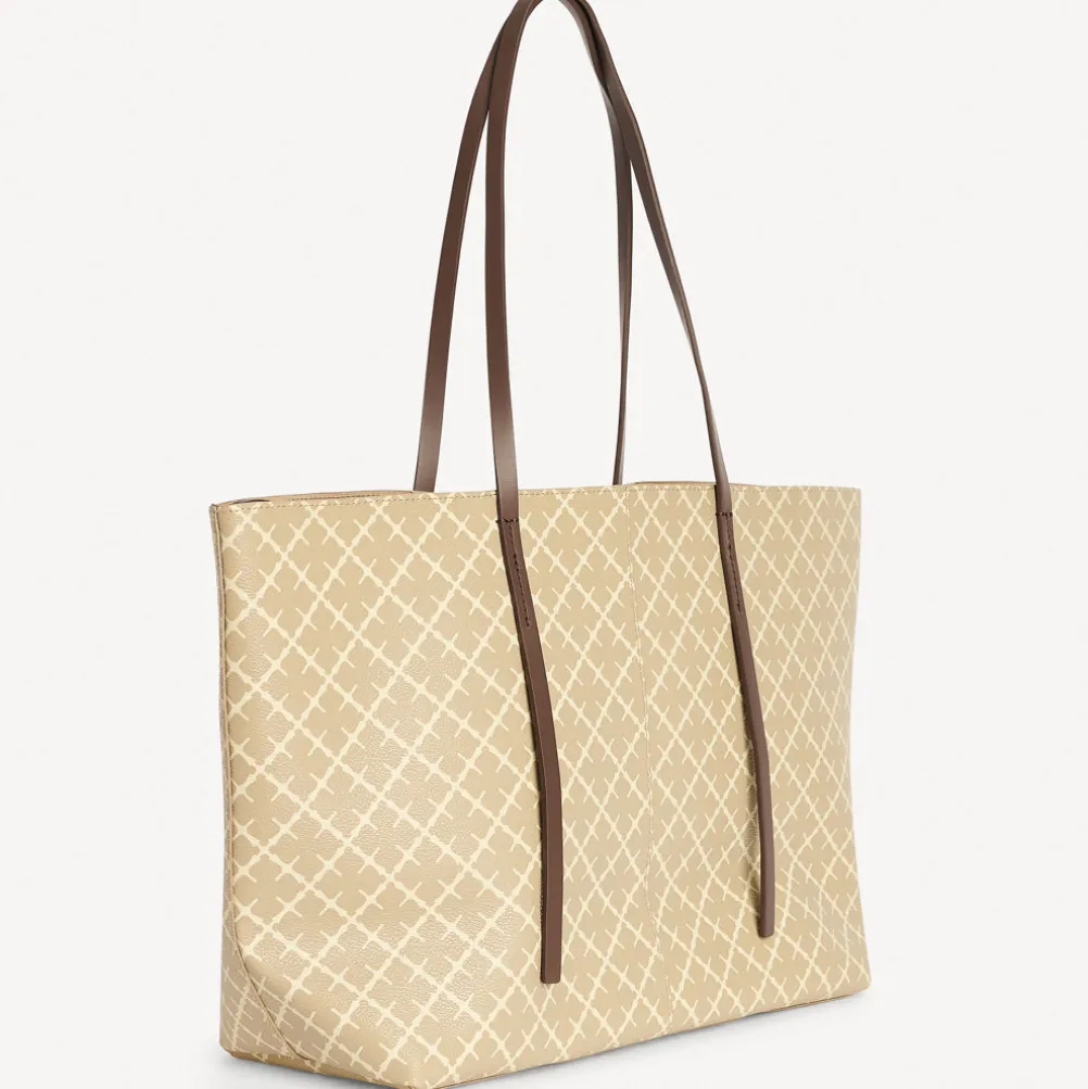 Pæn og klassisk taske med læderdetaljer fra Malene Birger med det velkendte signaturmønster. Tasken har inderlomme med lynlås.