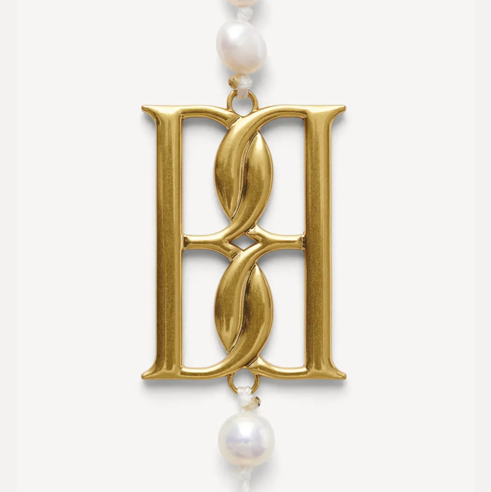Smuk og sofistikeret monogram halskæde fra By Malene Birger. Fremstillet af naturlige ferskvandsperler.