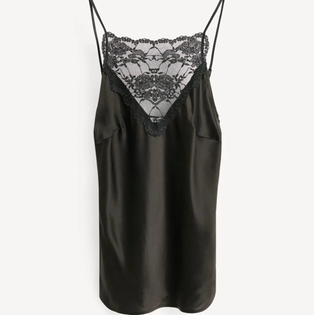 Super smuk satintop med flotte blonder fra By Malene Birger. Ideel til lag på lag styling – både dag og nat.