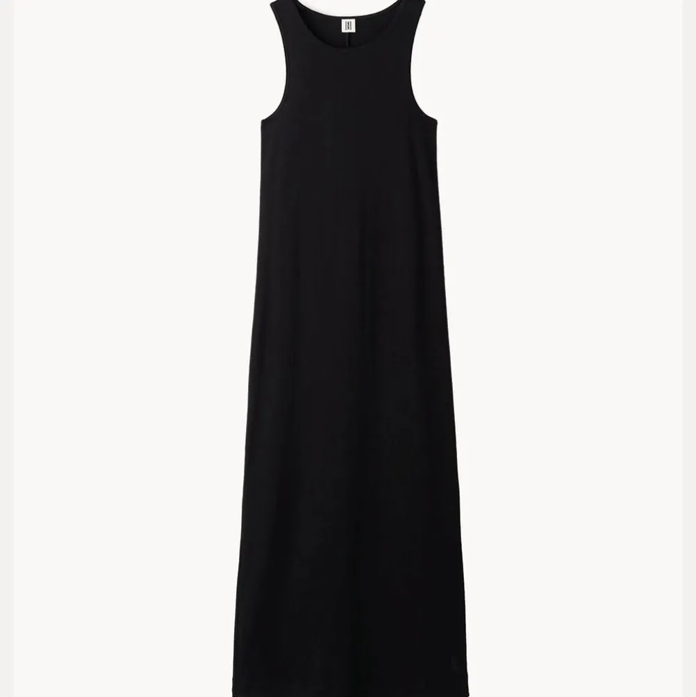 Ærmeløs ribstrikket enkel maxikjole fra By Malene Birger. Style med Jummis manchetten for at fremhæve din talje.