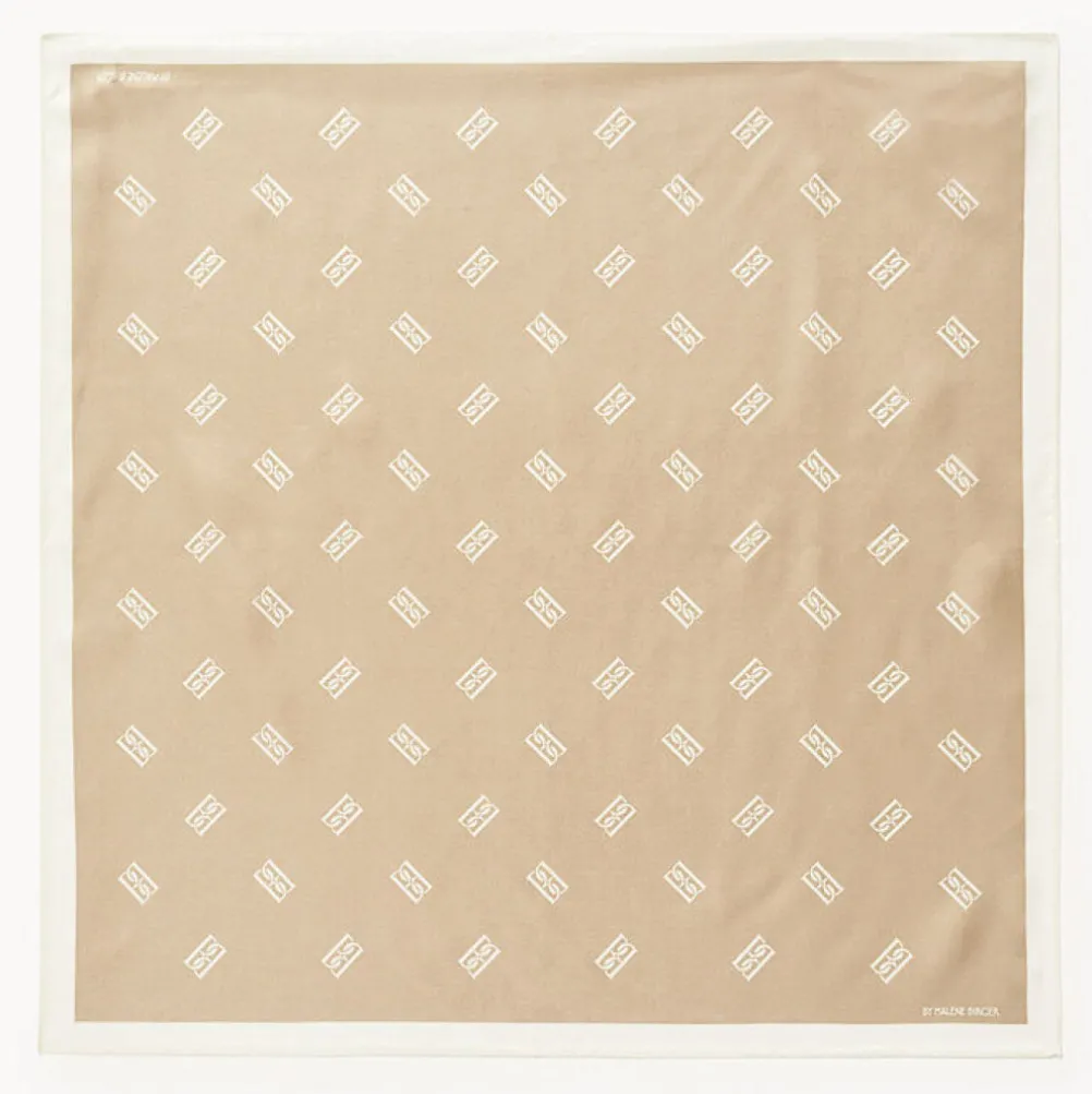 Flot silketørklæde i et klassisk Malene Birger design med monogrammer. Bind det om halsen, om dit håndled eller hanken på din taske.