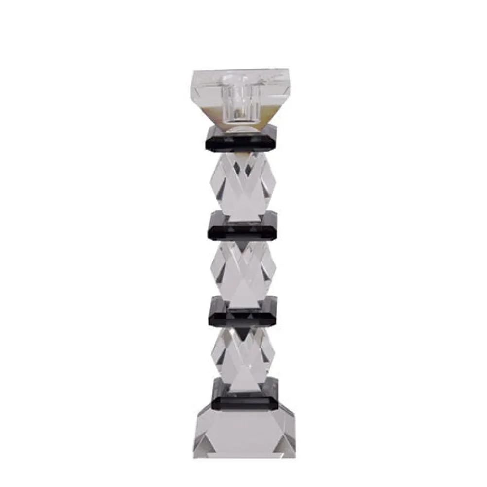 Smuk krystal stage fra Cst bon i grå krystalglas. Stagen har en kantet fod og en kantet top og er 22 cm høj. Krystalstagen er elegant og skulpturel med dine runde og kantet former.