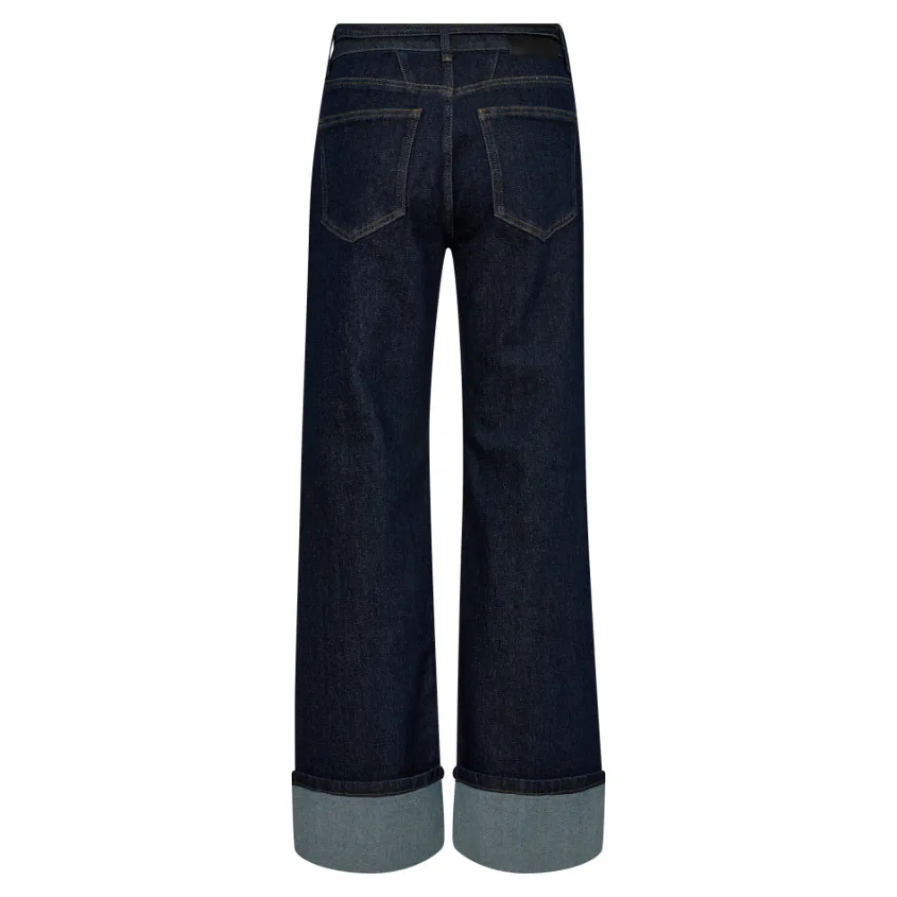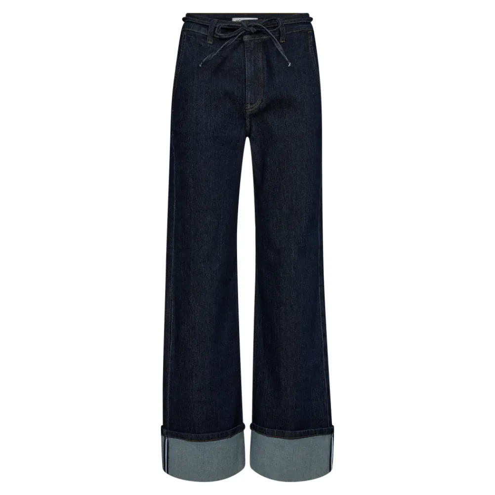 Lækre mørke jeans med normal pasform fra Co’couture. Med bindebånd i taljen og opsmøg forneden.