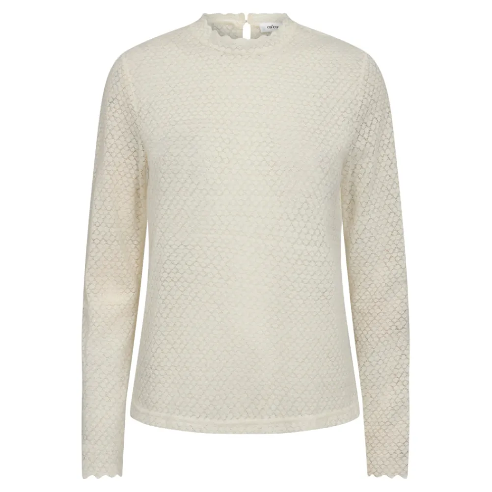 Elegant blondebluse fra Co’couture med rund hals og lange ærmer. Let gennemsigtig. Perfekt til både hverdag og fest.