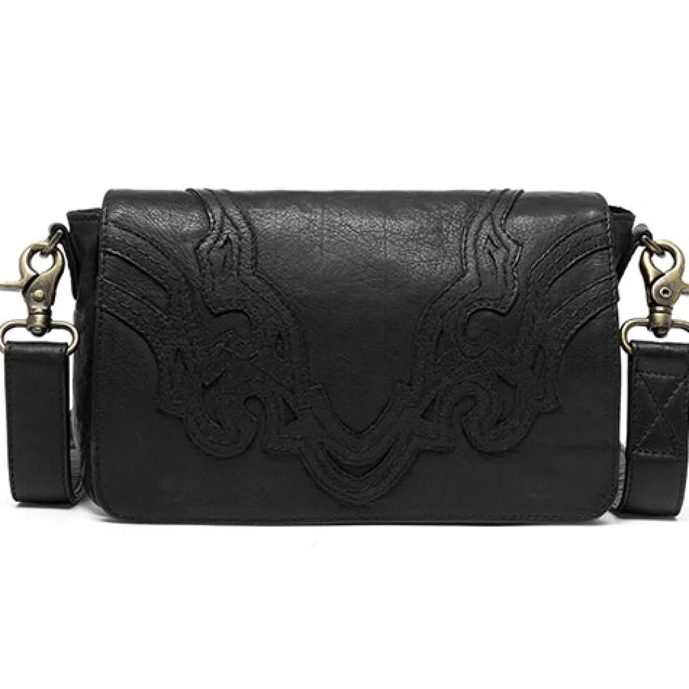 Cool lækker læder cross over taske fra Depeche med flot mønster på fronten. Remen er justerbar.