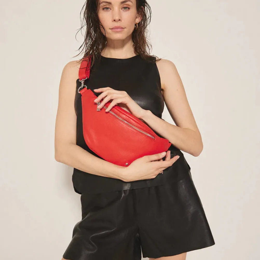 Flot læder bumbag fra Depeche i smuk rød farve. Remmen er justerbar.