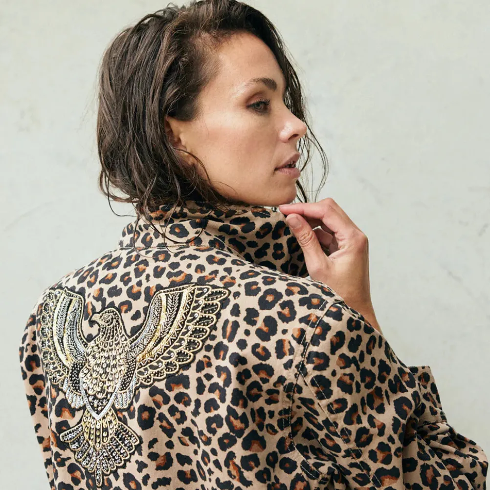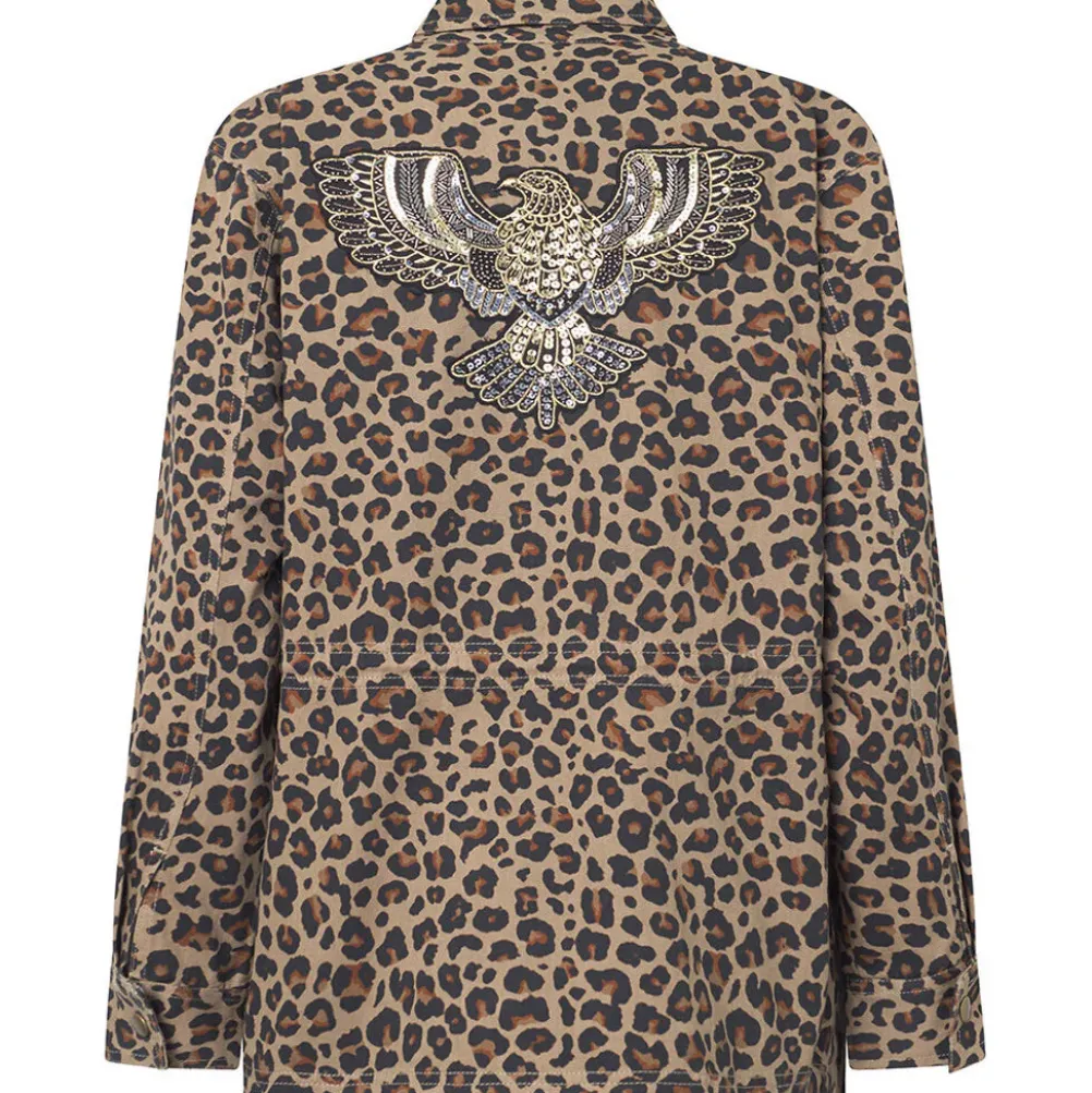 Super cool og flot jakke fra Depeche med leopardprint og fine detaljer! Jakken er dekoreret med lommer, smukke patches på lommen og ryggen og så lukkes den med lynlås og knapper. Kan snøres ind i taljen.