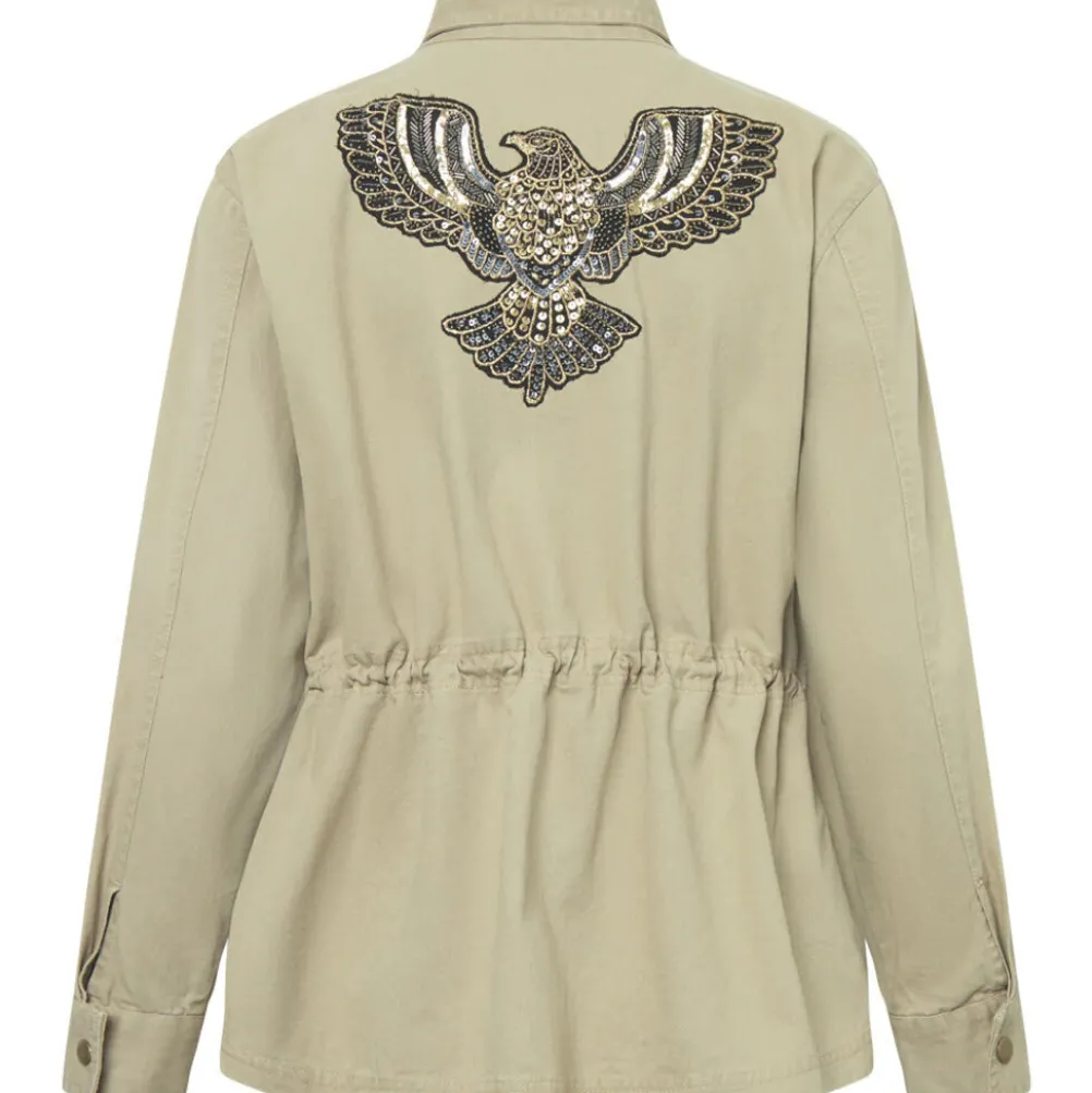 Super cool og flot jakke fra Depeche med fine detaljer! Jakken er dekoreret brystlommer, smukke patches på lommen og ryggen og så lukkes den med lynlås og knapper. Kan snøres ind i taljen.