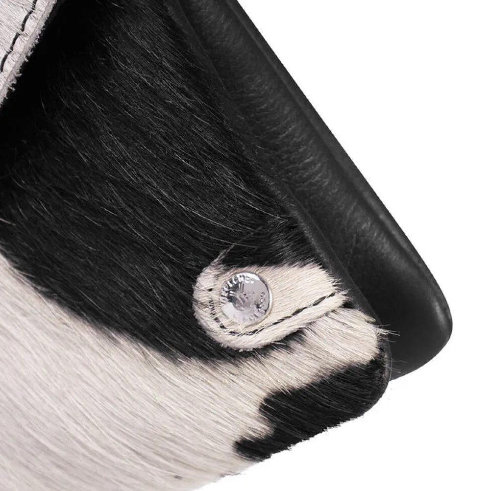 Flot pung lavet i blødt kalveskind med koprint. Pungen har plads til flere kreditkort og har et separat rum til kontanter eller kvitteringer. Den lukkes med en knap på fronten.