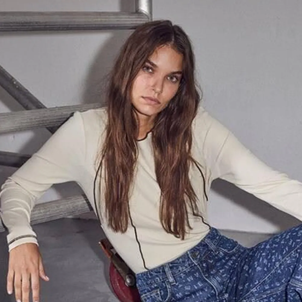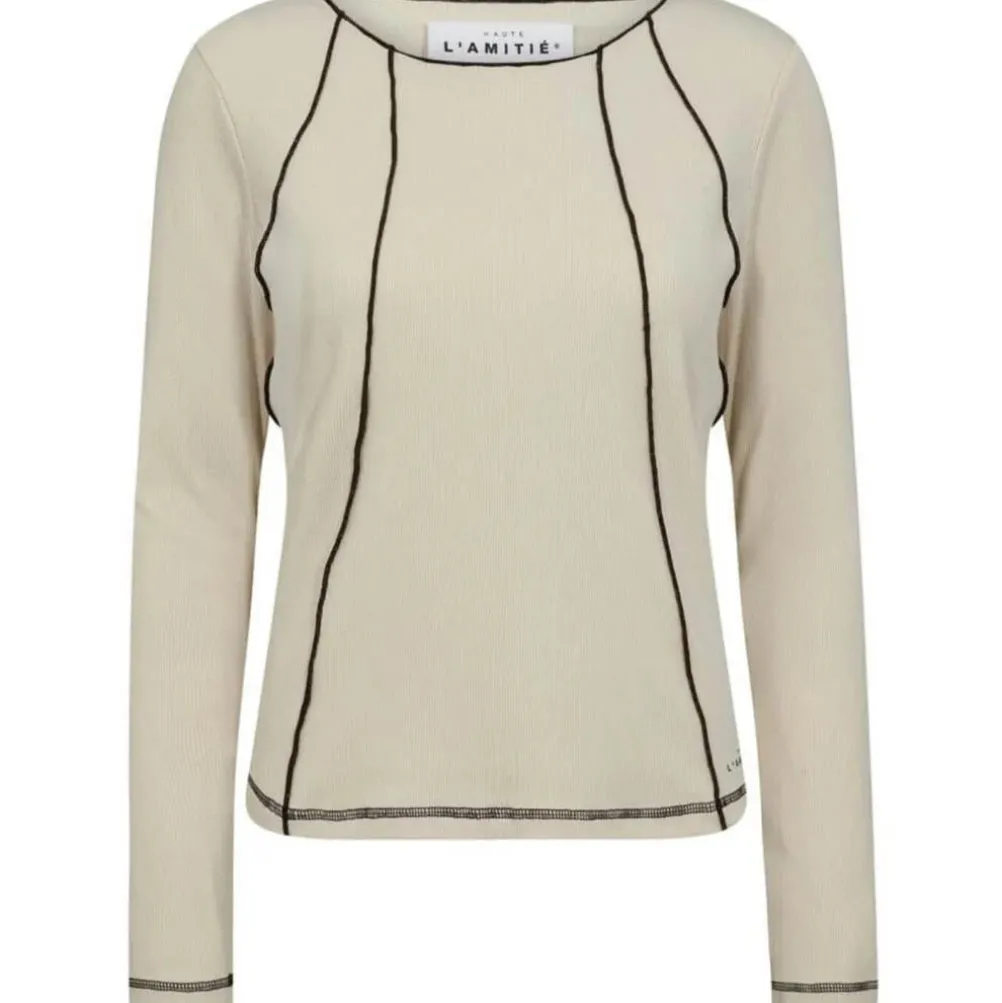 Klassisk enkel top fra Haute L’amitie i flot moccafarve med logo på brystet. Tæt pasform.
