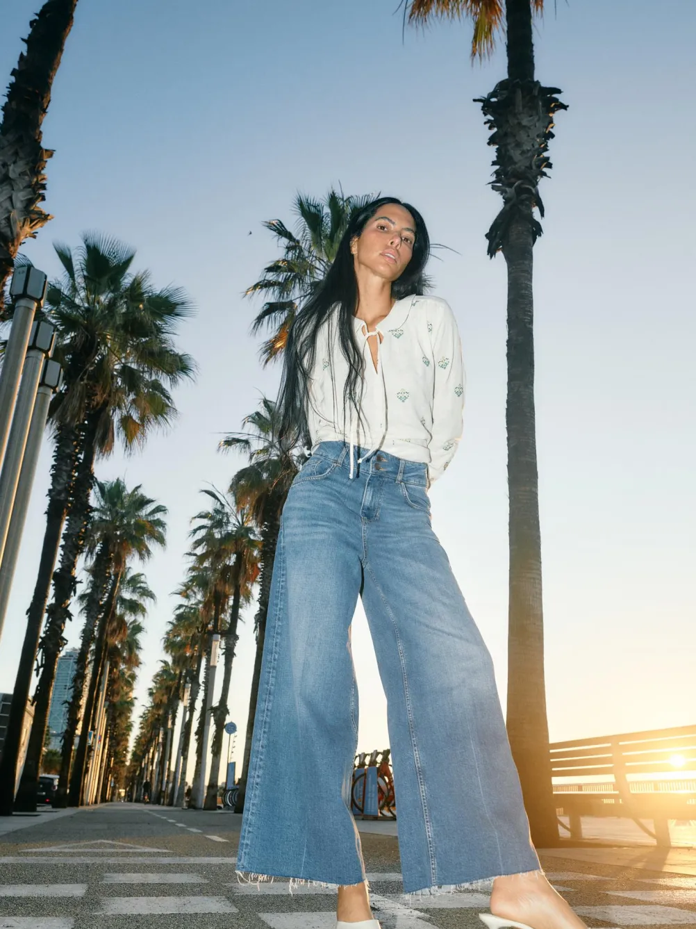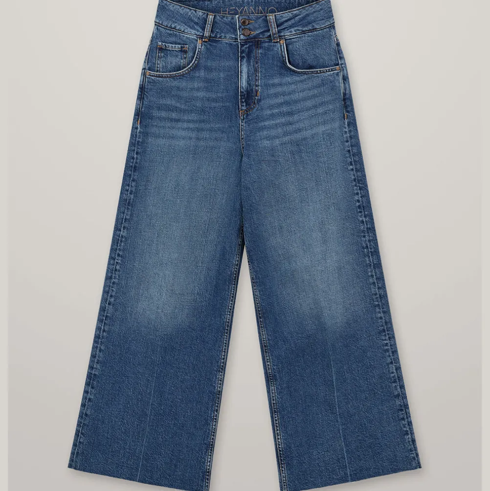 Cool vaskede jeans fra Heyanno designet i tung denim med et lækkert bounce, høj talje, brede ben og dobbelt knaplukning. Den rå kant fuldender det afslappede look.