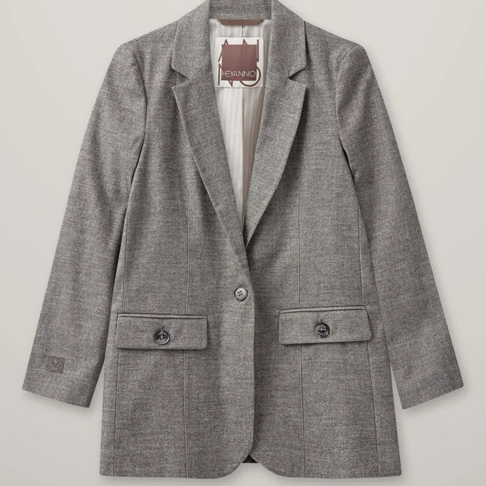 Flot oversize blazer fra Heyanno fremstillet i en blød EcoVero og genanvendt polyester. Designet med flaplommer og anagram broderi ved manchetterne. Kan styles med det meste.