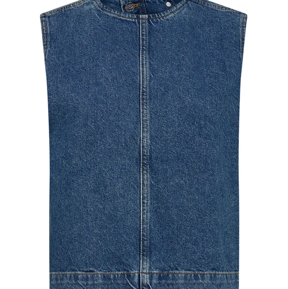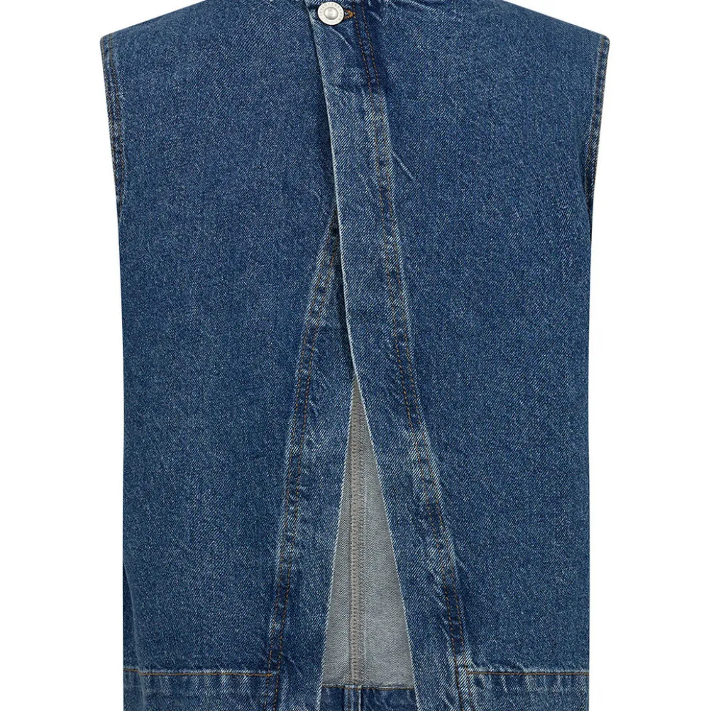 Super cool mørkeblå denimvest fra Ivy Copenhagen med åben ryg.