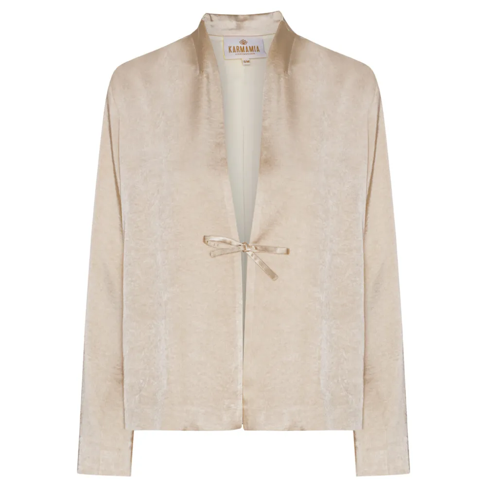 Smuk satinskjorte fra Karmamia med fin sløjfelukning. Perfekt både til hverdag og fest.